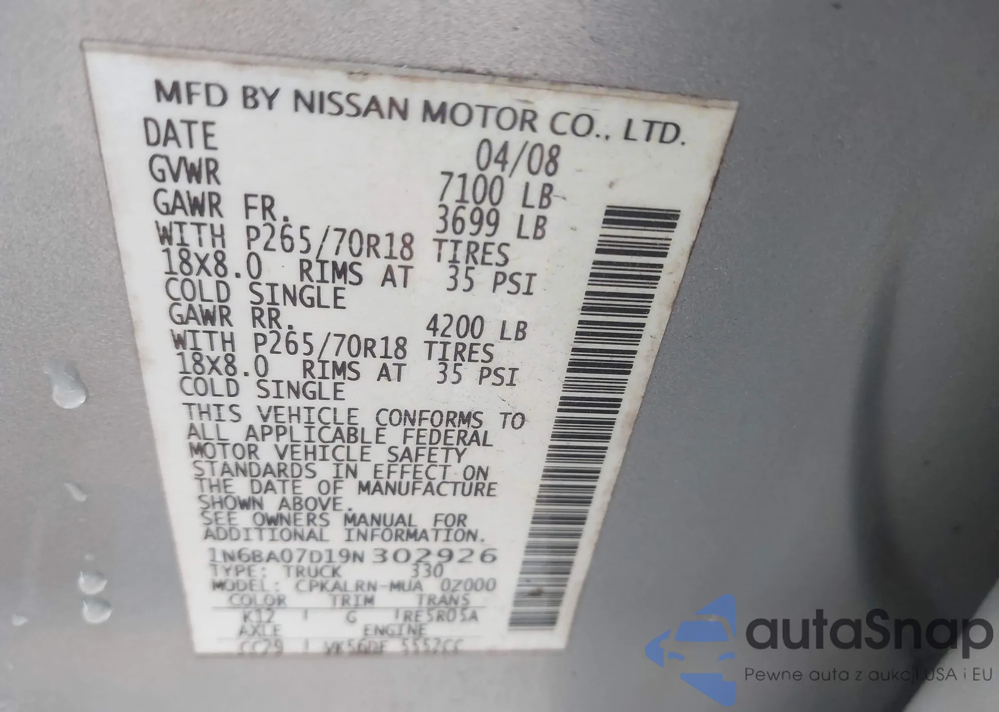 Nissan Titan 2009 – Historia pojazdu (sprzedany na IAAI)