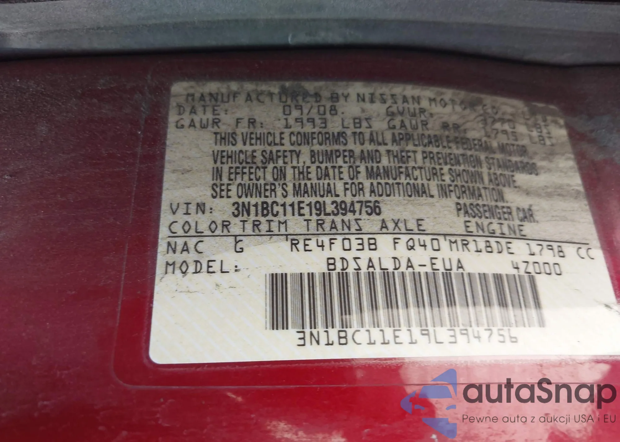 VIN: 3N1BC11E19L394756