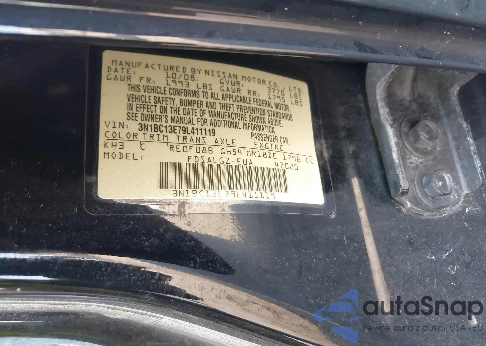 VIN: 3N1BC13E79L411119