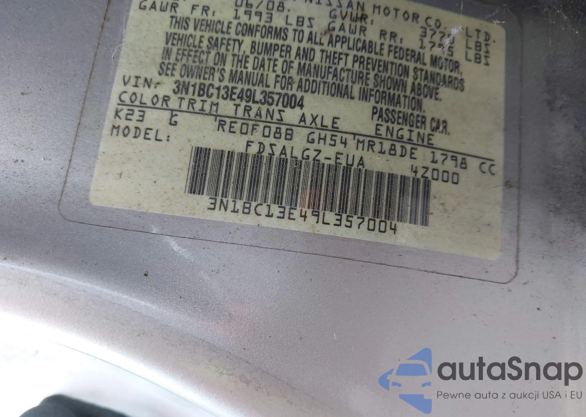 VIN: 3N1BC13E49L357004