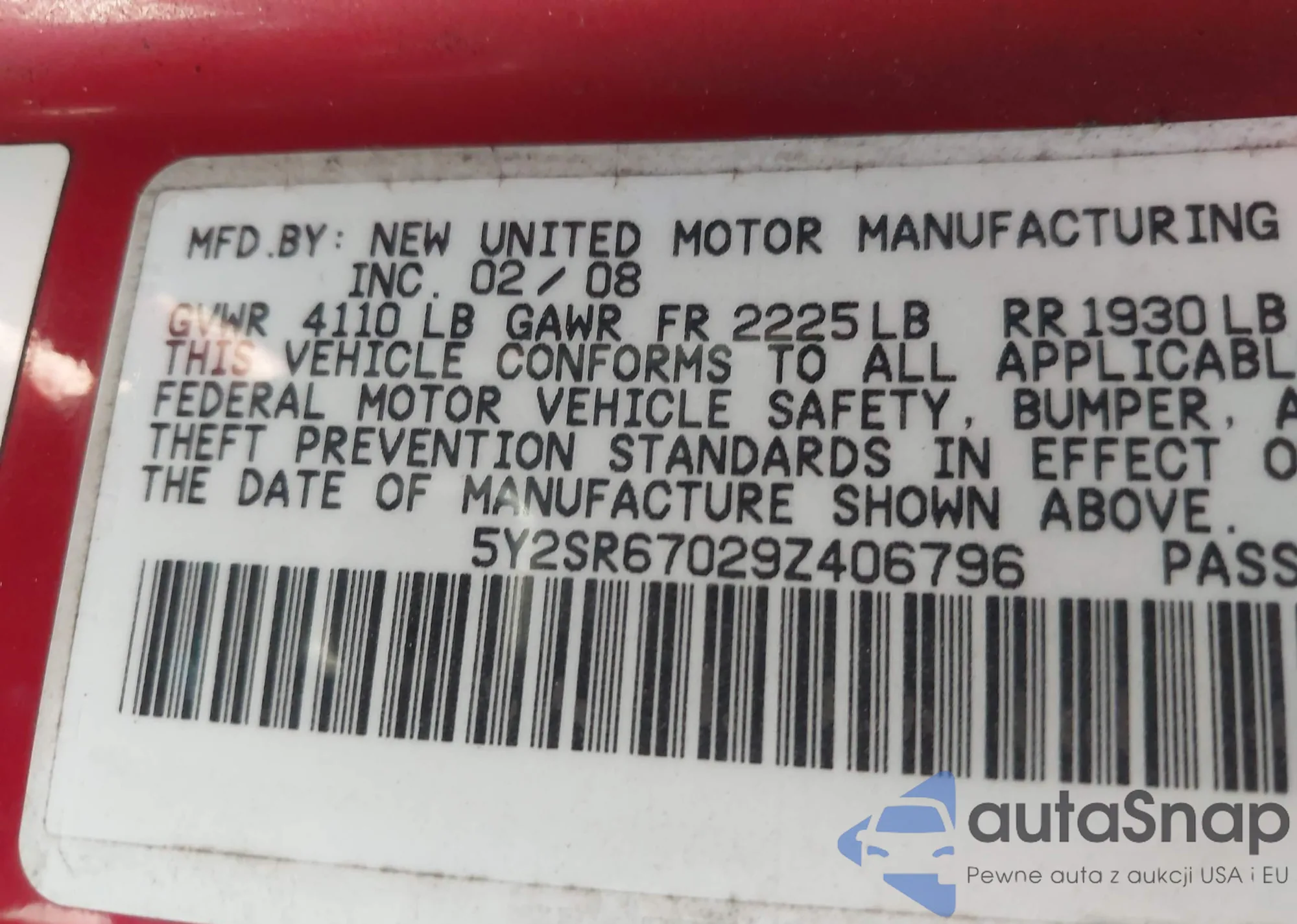 Samochód Pontiac Vibe 2009 (VIN 5Y2SR67029Z406796) nie był wcześniej licytowany. Dokumenty są czyste, przebieg odpowiada lub jest niższy niż średnia rynku. Sprzedaje go firma ubezpieczeniowa – polecamy zakup. Dostawa do portu zajmie ok. 6–8 tygodni.