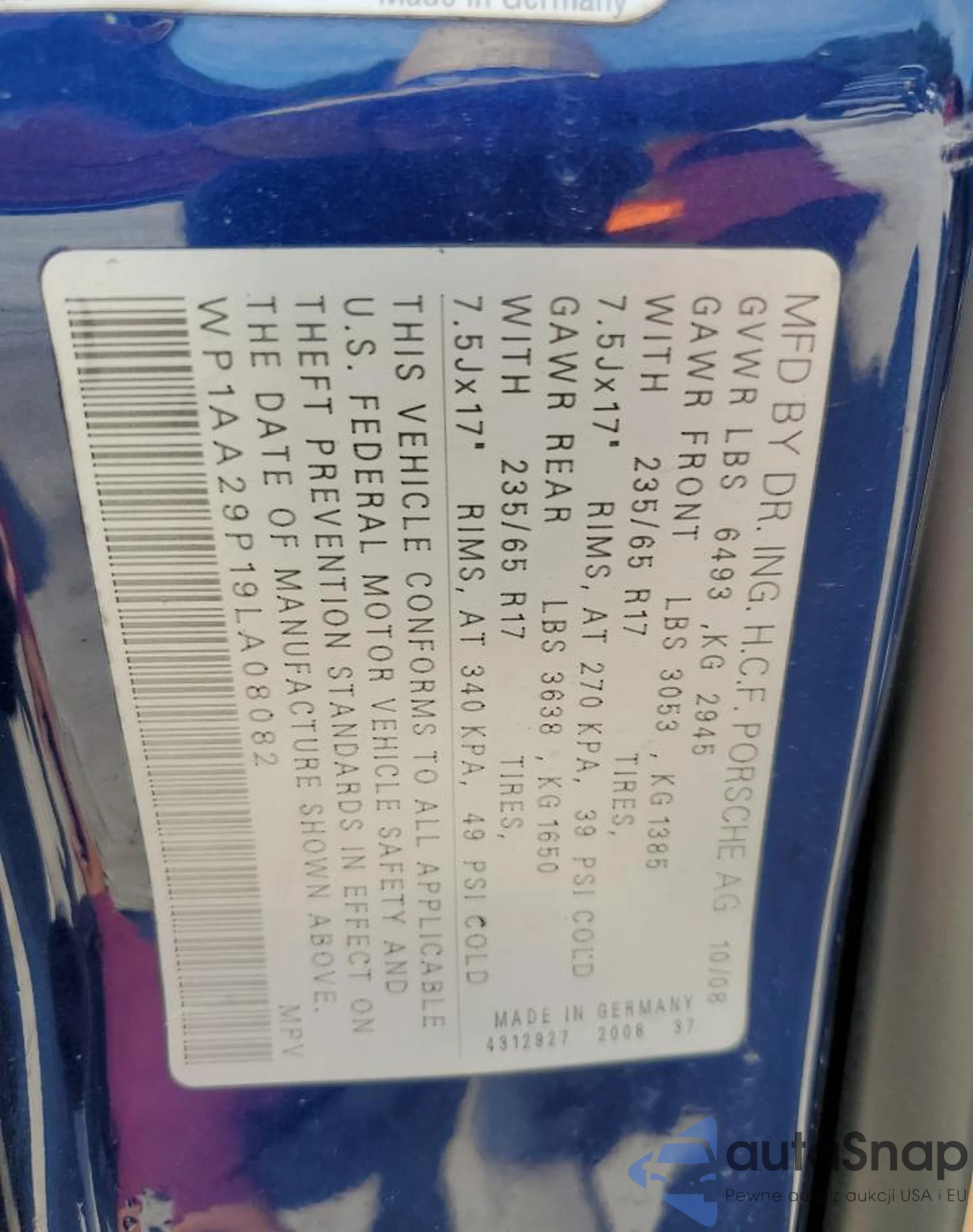VIN: WP1AA29P19LA08082