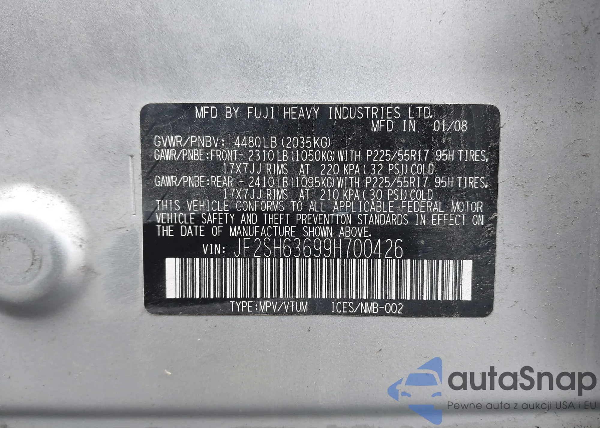 VIN: JF2SH63699H700426