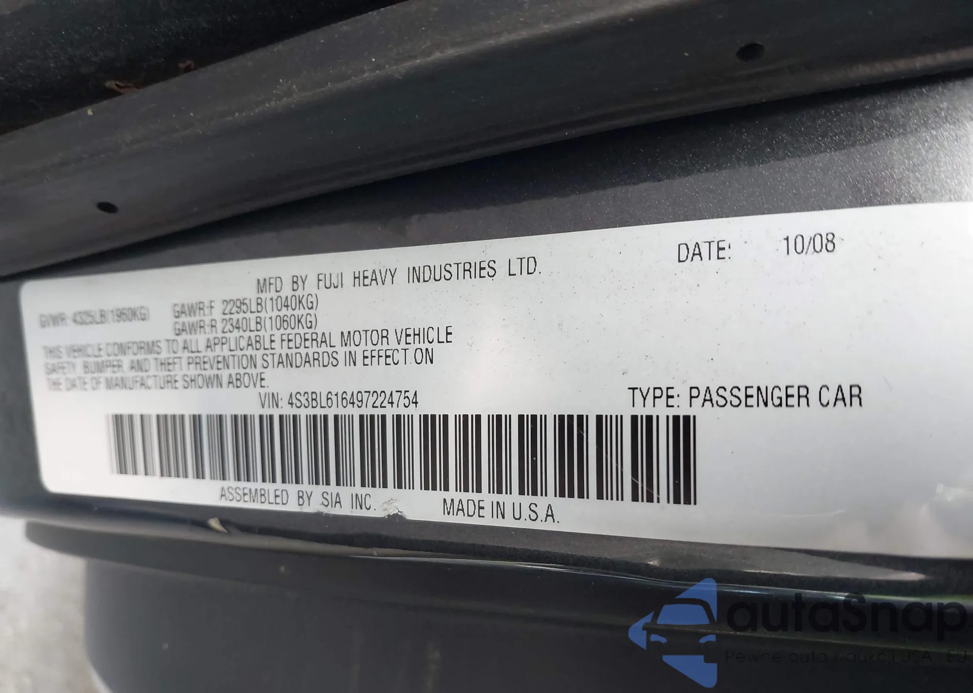VIN: 4S3BL616497224754