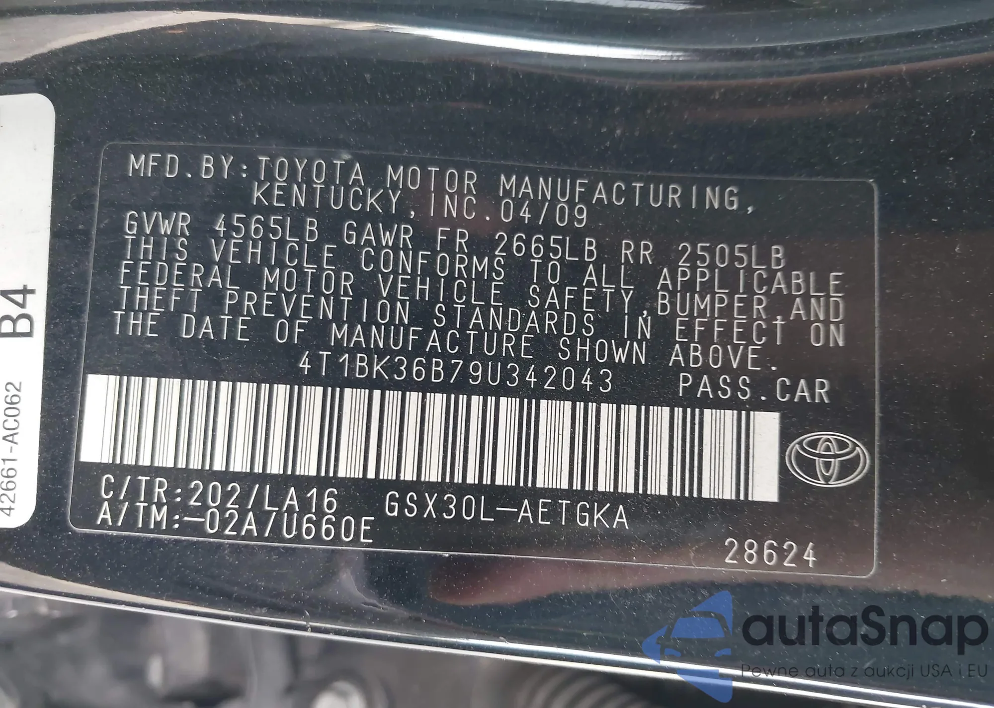 VIN: 4T1BK36B79U342043