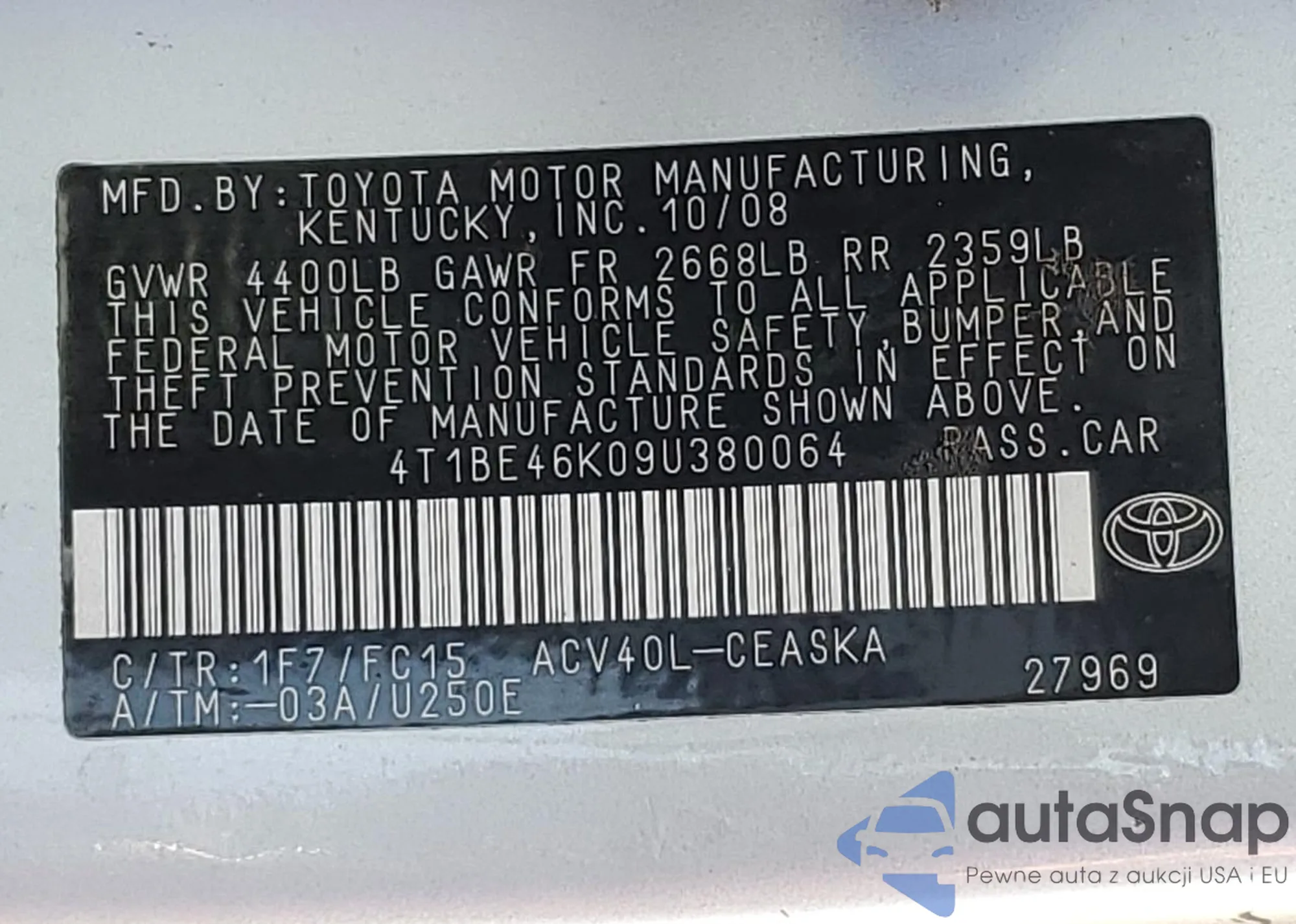 VIN: 4T1BE46K09U380064