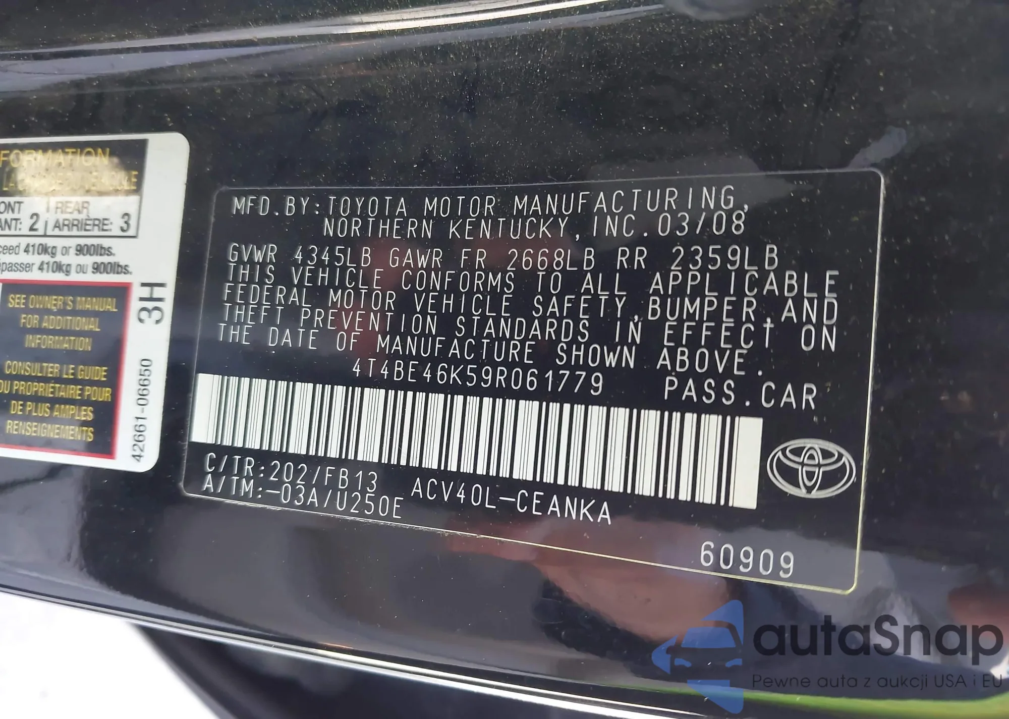 VIN: 4T4BE46K59R061779
