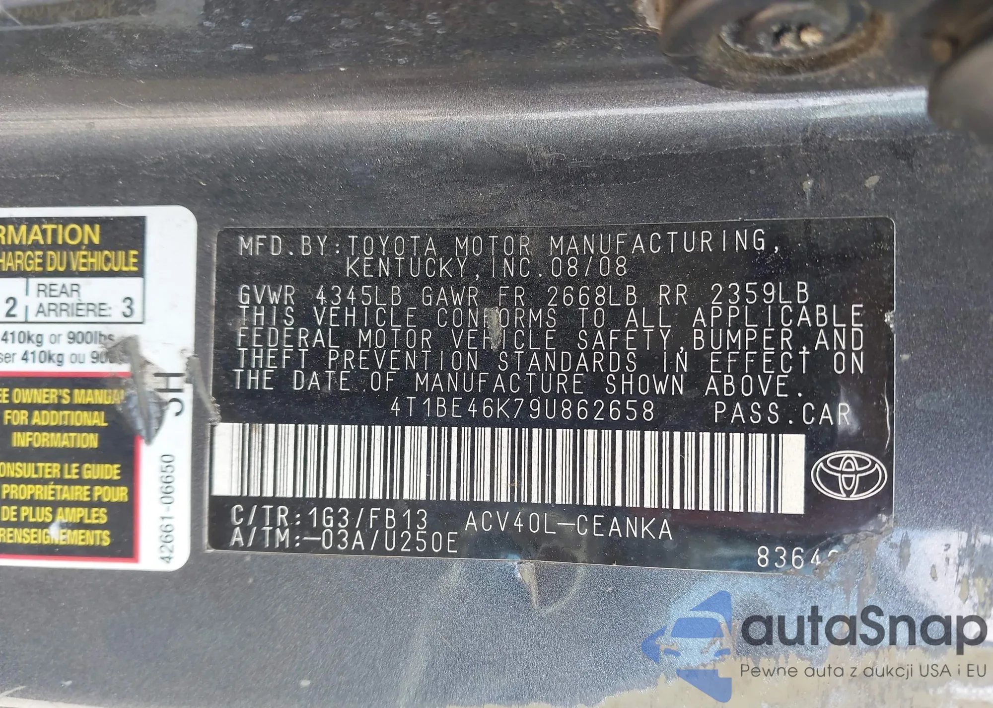 Toyota Camry 2009 – Historia pojazdu (sprzedany na IAAI)