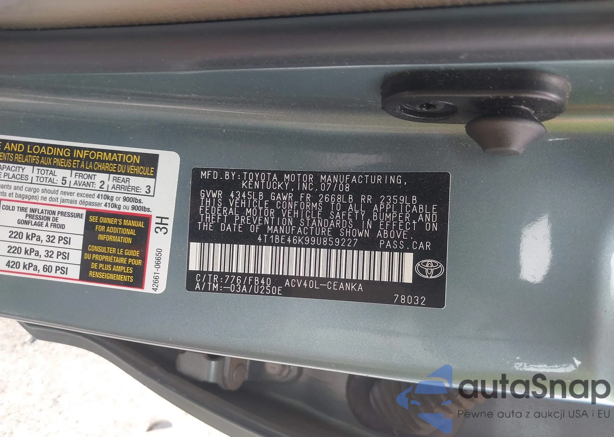 Toyota Camry 2009 – Historia pojazdu (sprzedany na IAAI)
