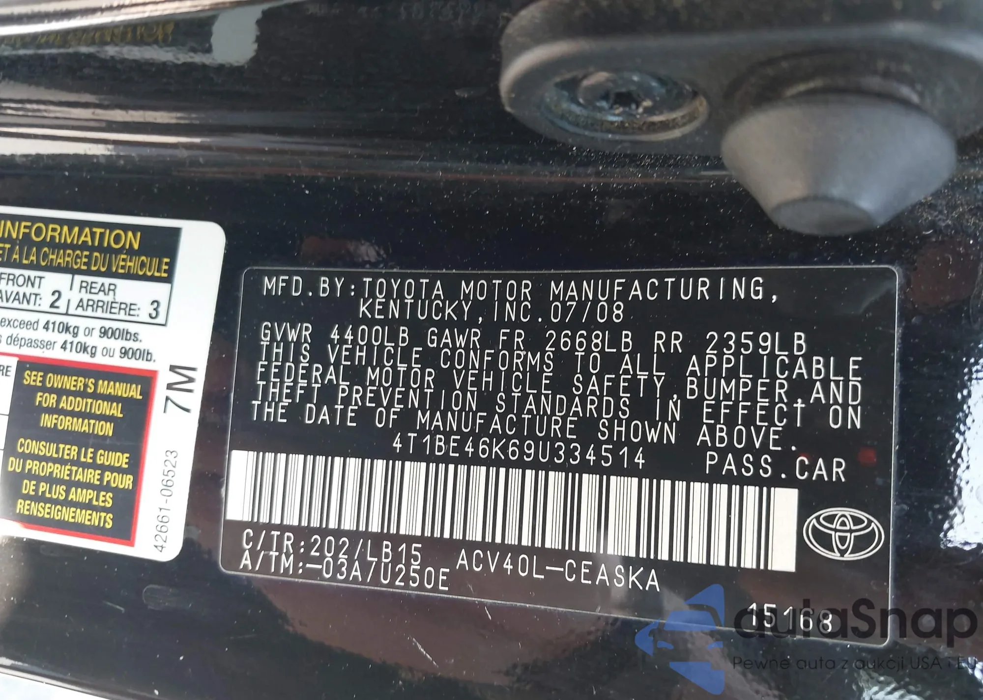 VIN: 4T1BE46K69U334514