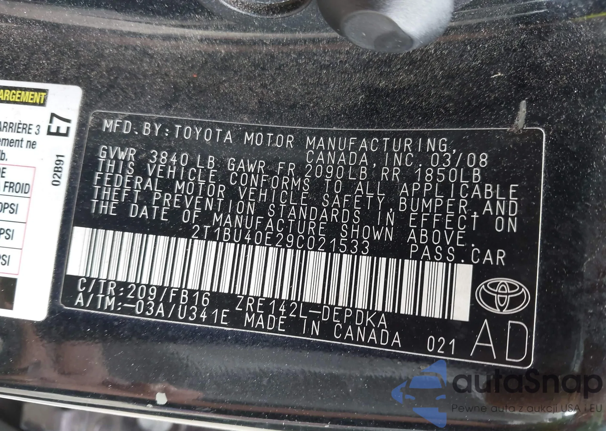 VIN: 2T1BU40E29C021533