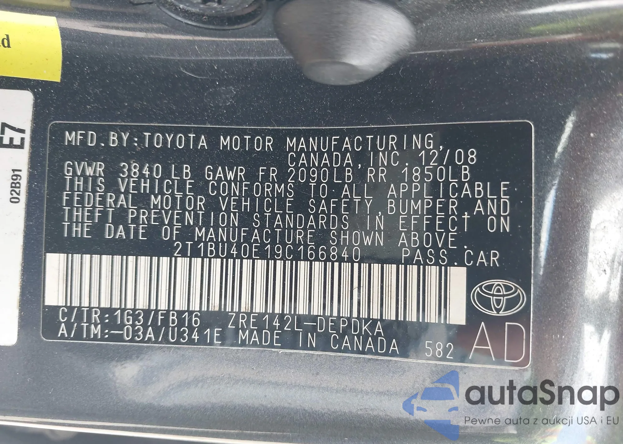 Toyota Corolla 2009 – Historia pojazdu (sprzedany na IAAI)