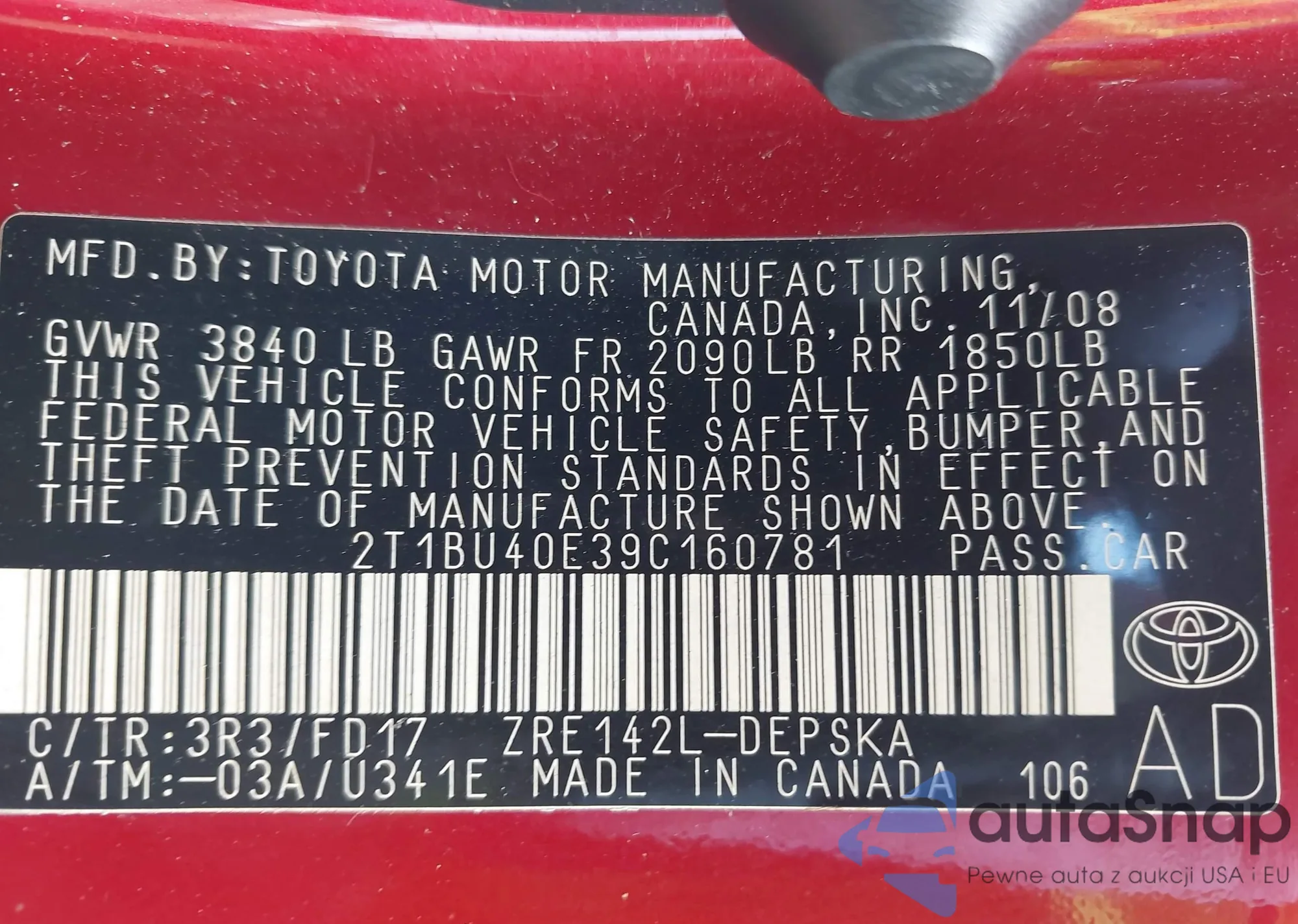 VIN: 2T1BU40E39C160781