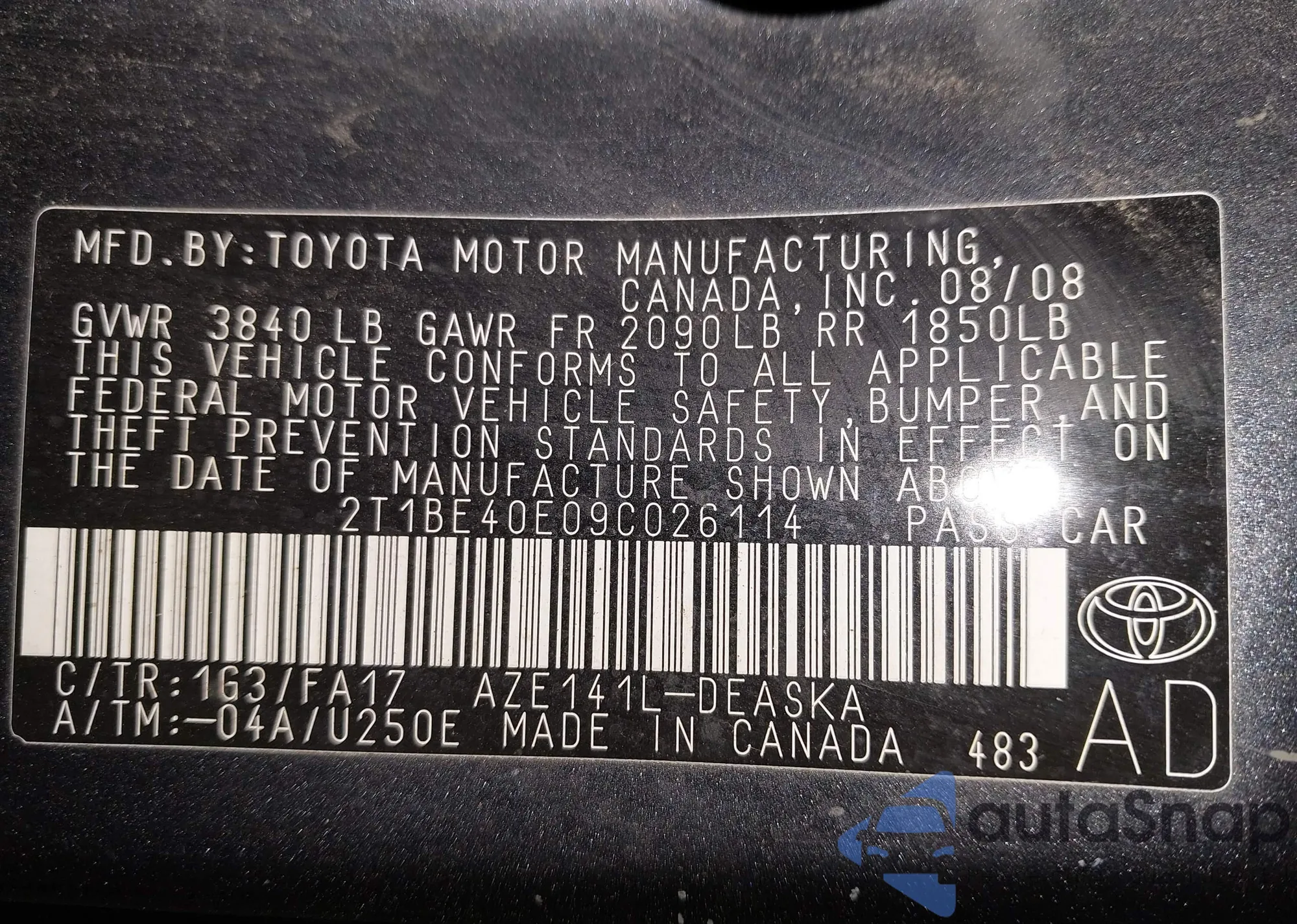 VIN: 2T1BE40E09C026114