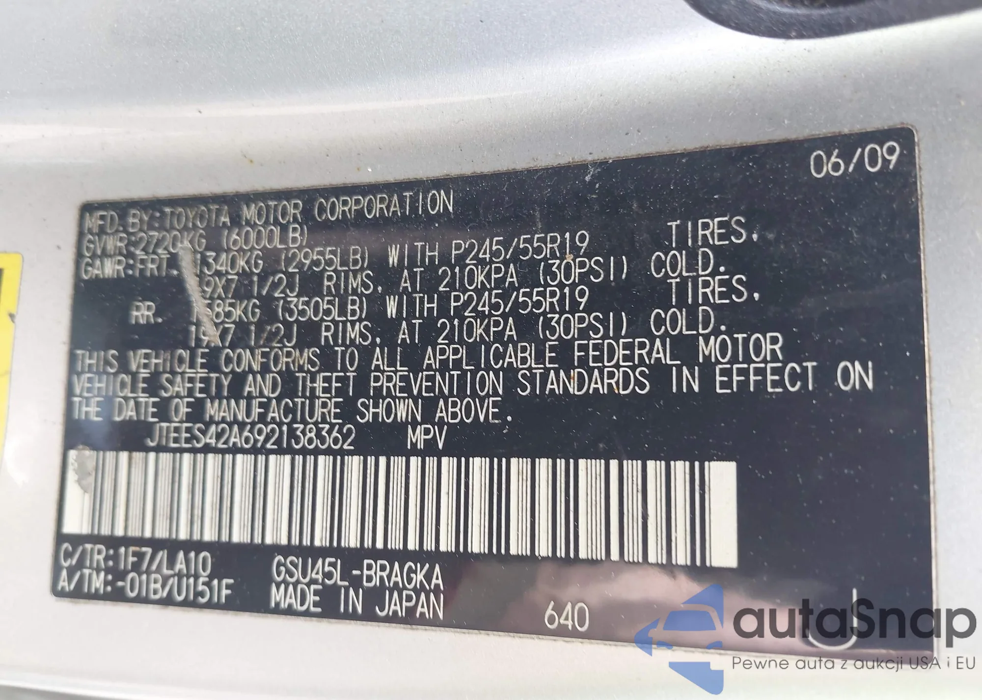 VIN: JTEES42A692138362