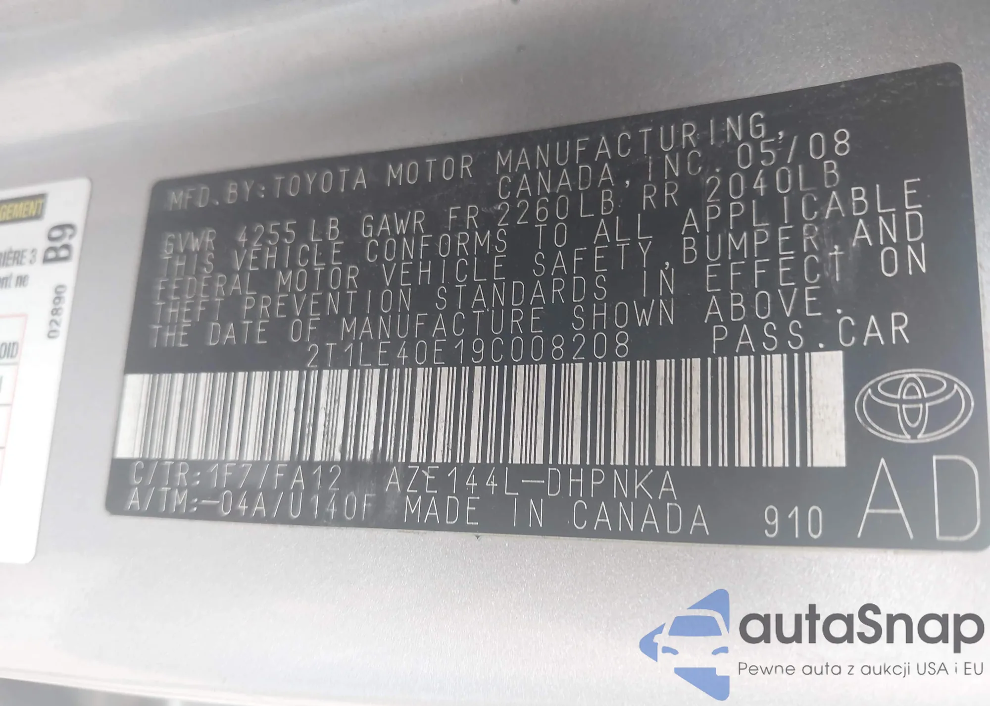 VIN: 2T1LE40E19C008208