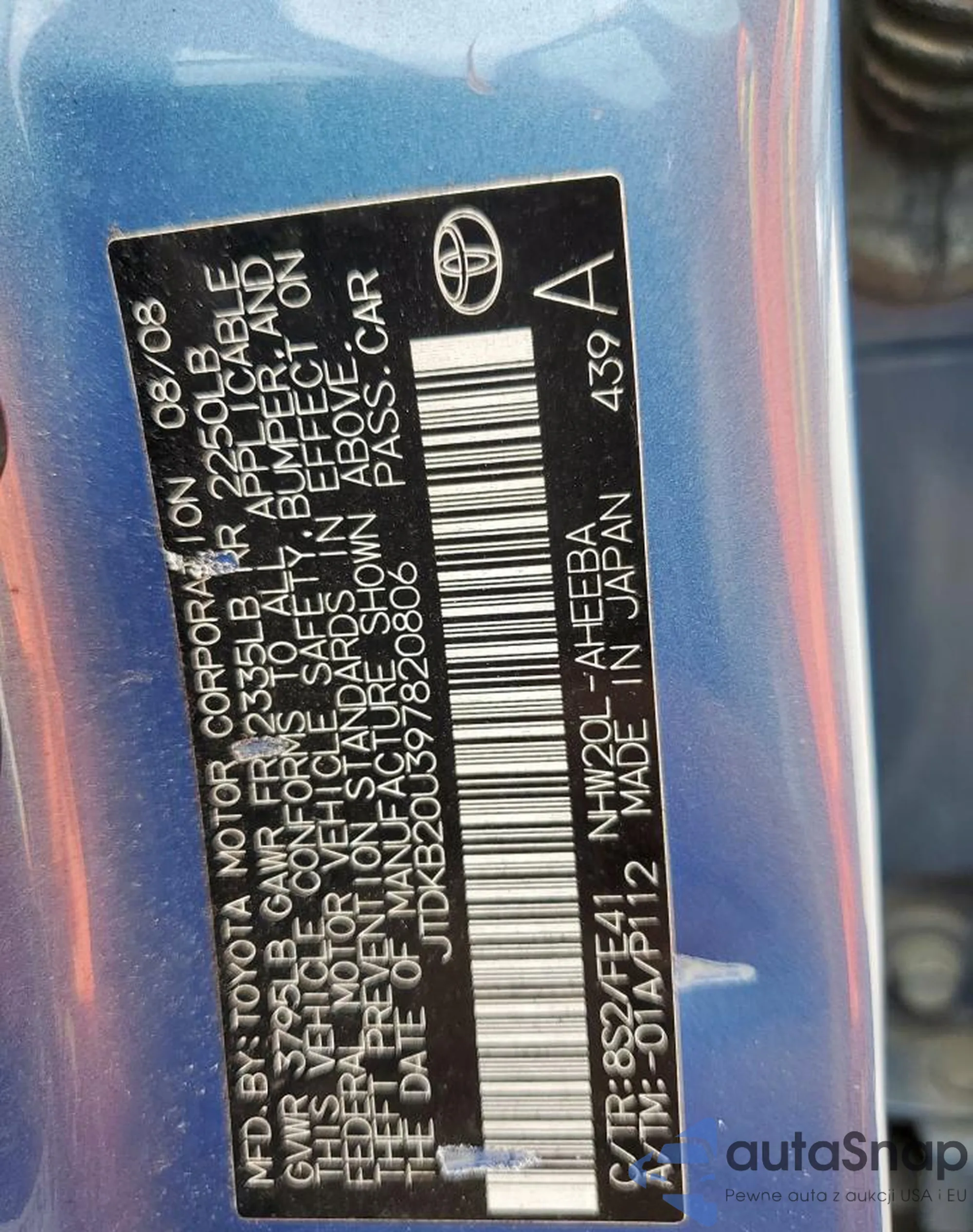 VIN: JTDKB20U397820806