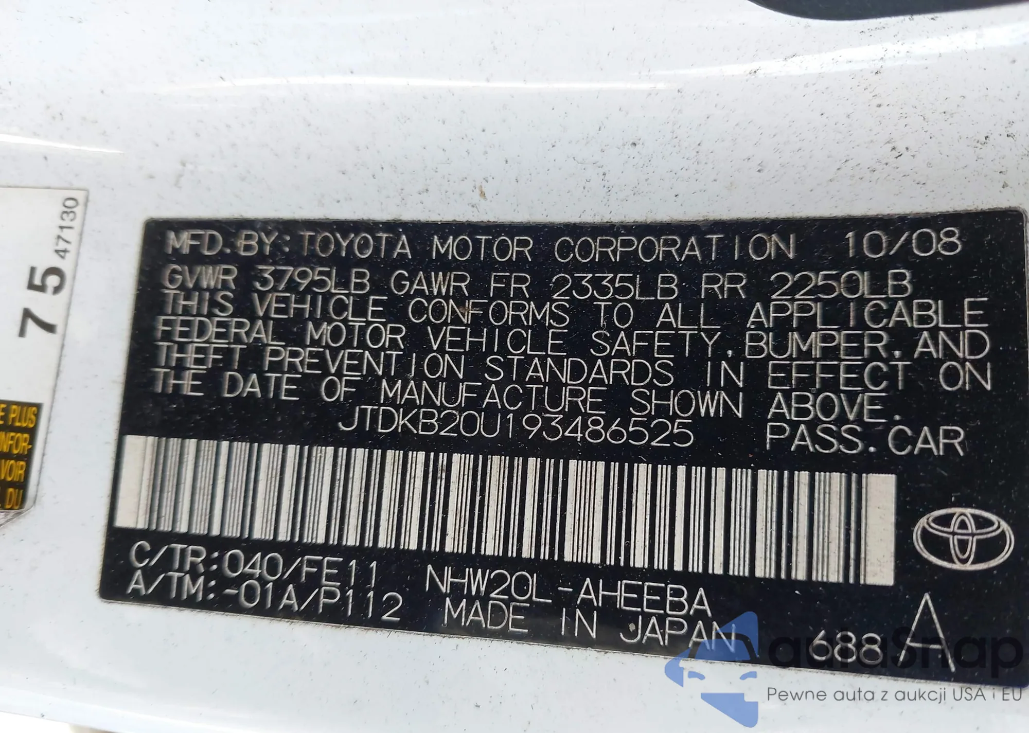 VIN: JTDKB20U193486525
