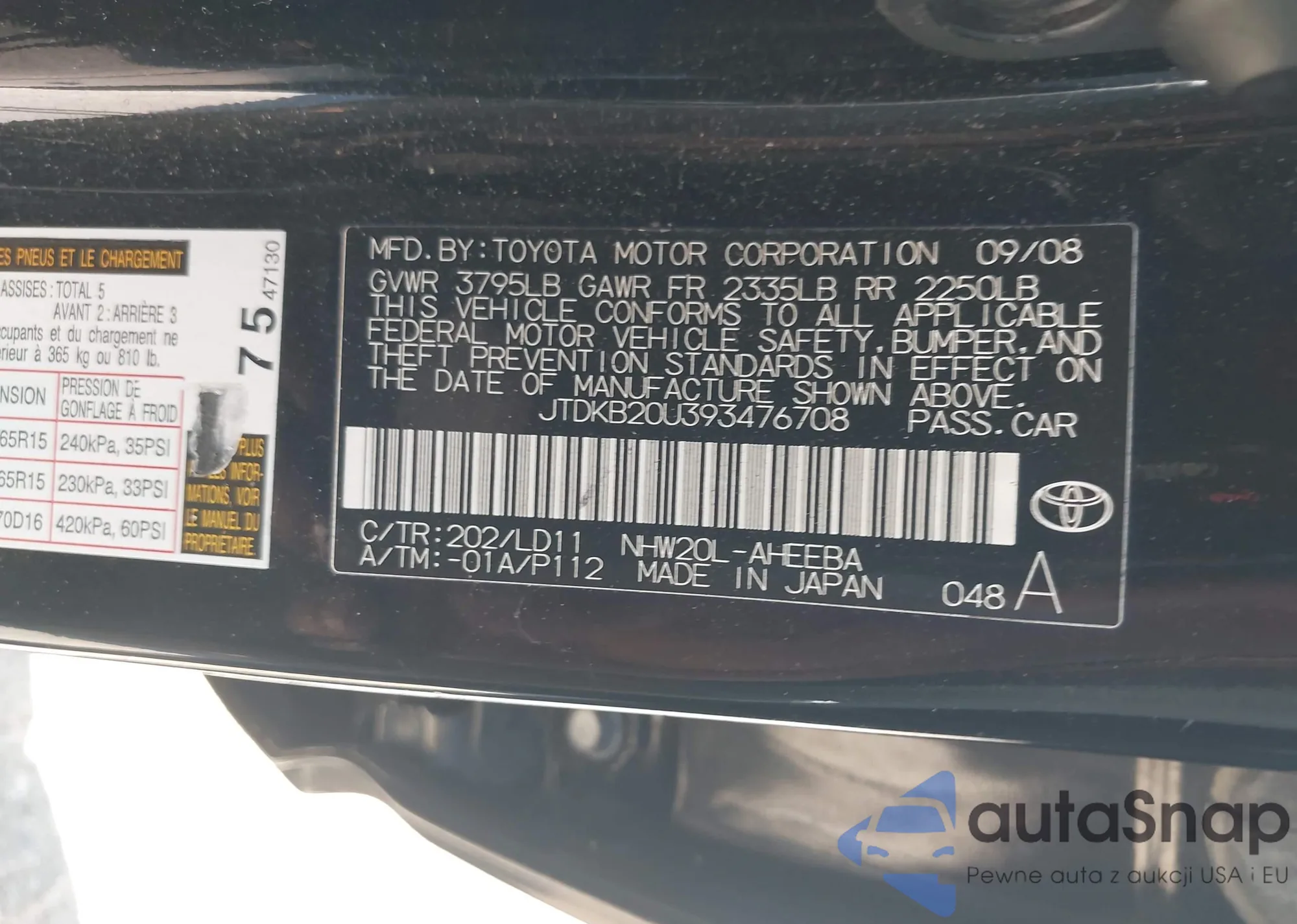 VIN: JTDKB20U393476708