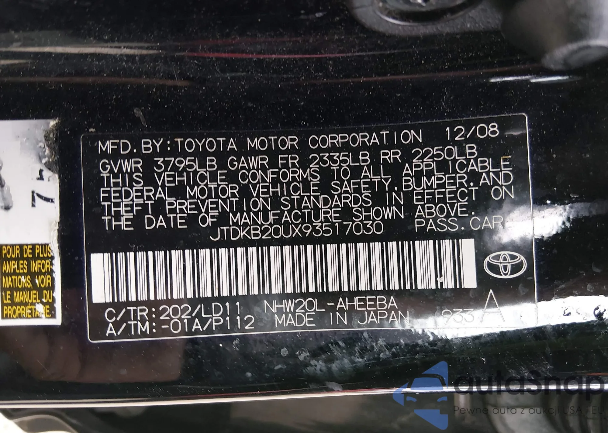 VIN: JTDKB20UX93517030