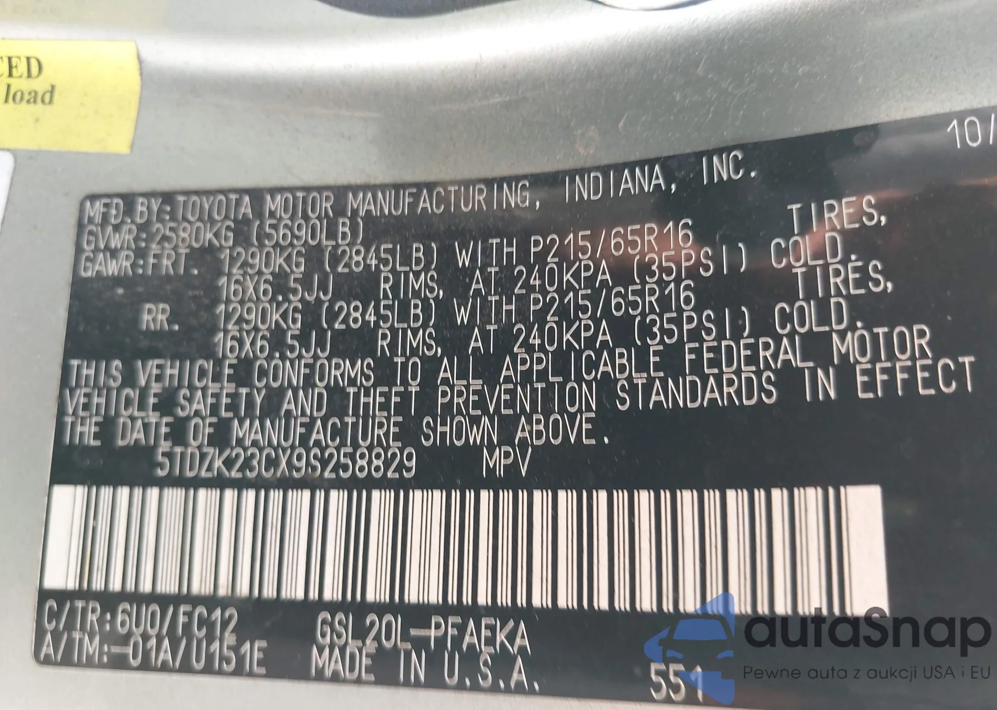 VIN: 5TDZK23CX9S258829