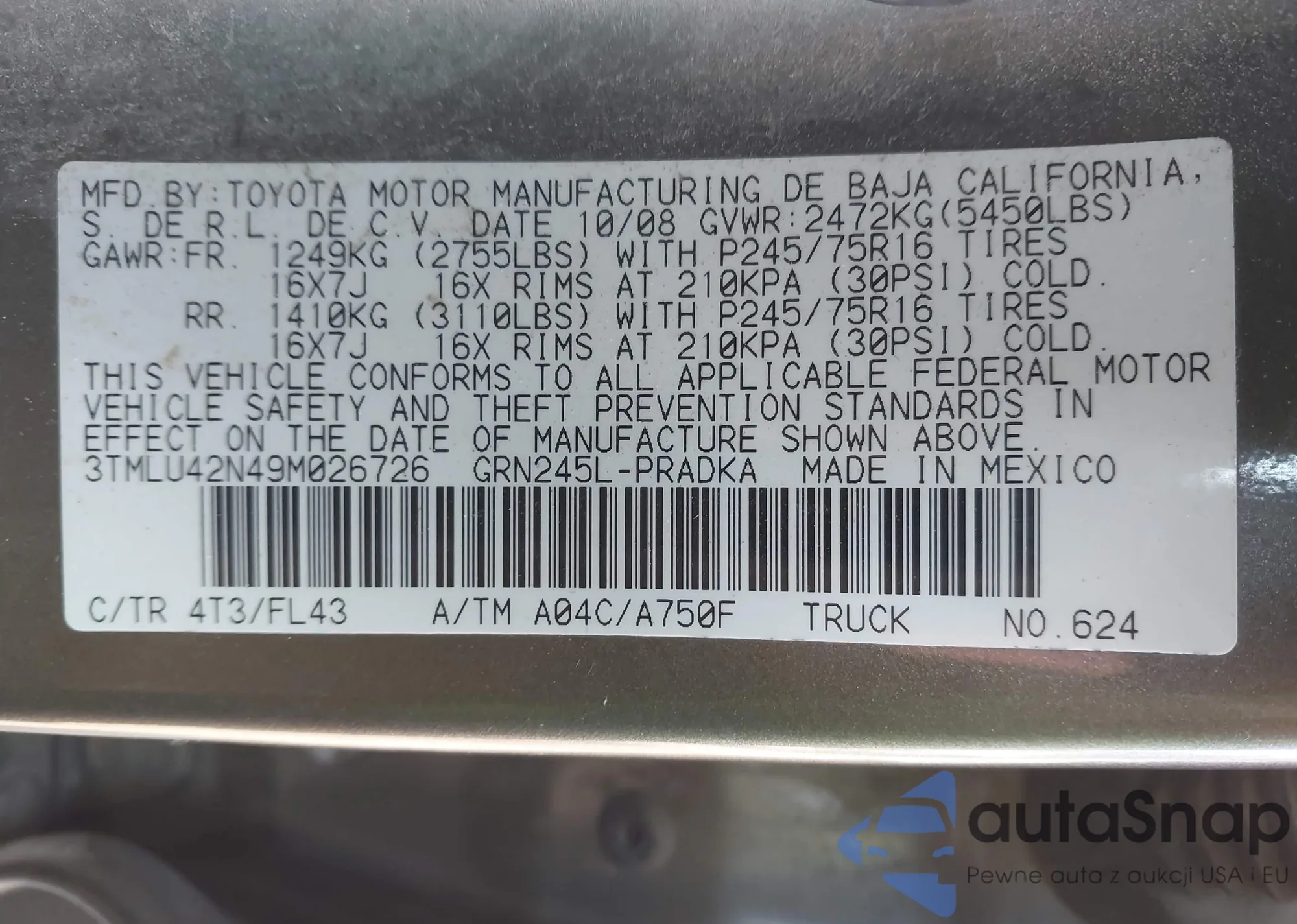 VIN: 3TMLU42N49M026726