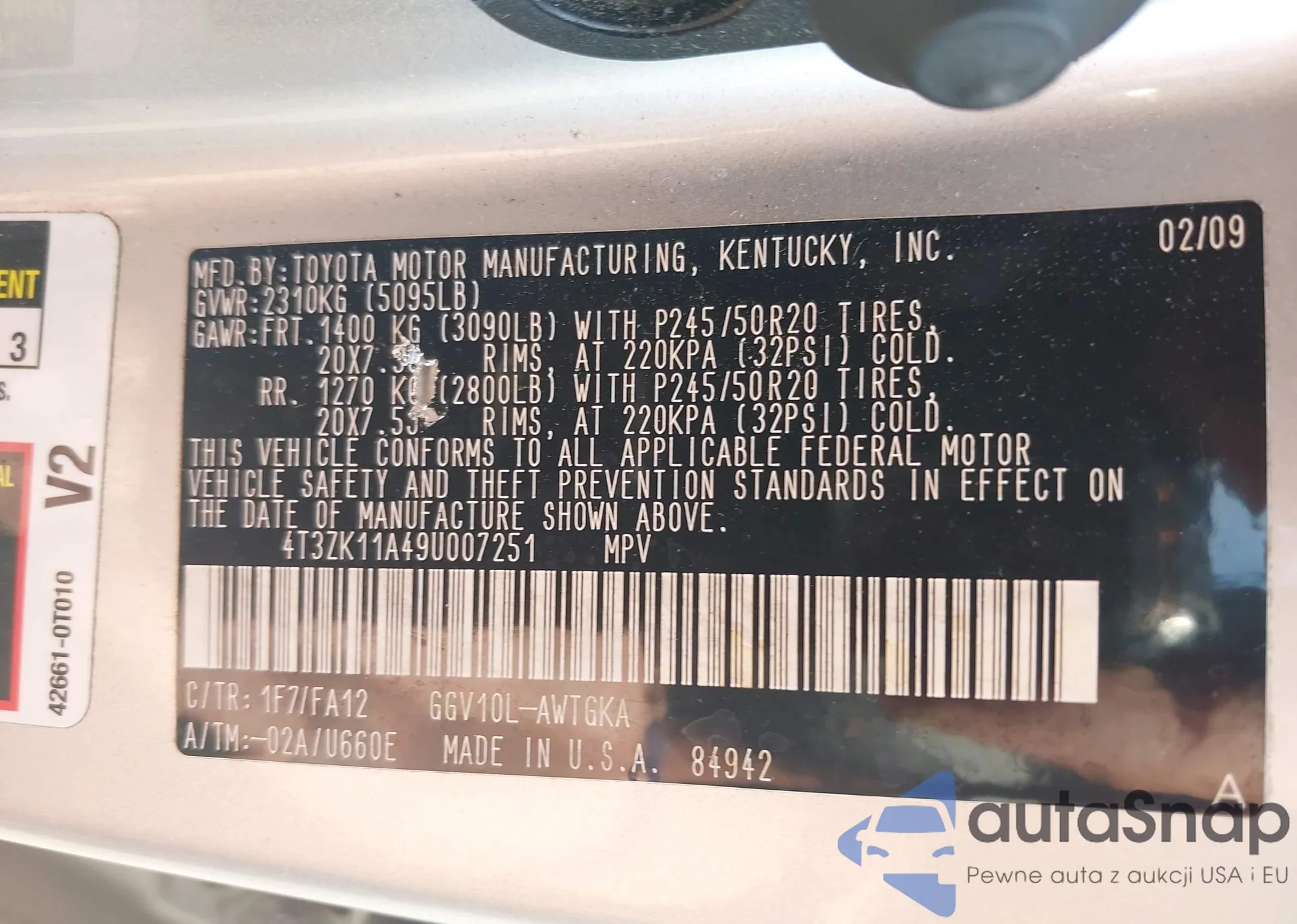 VIN: 4T3ZK11A49U007251