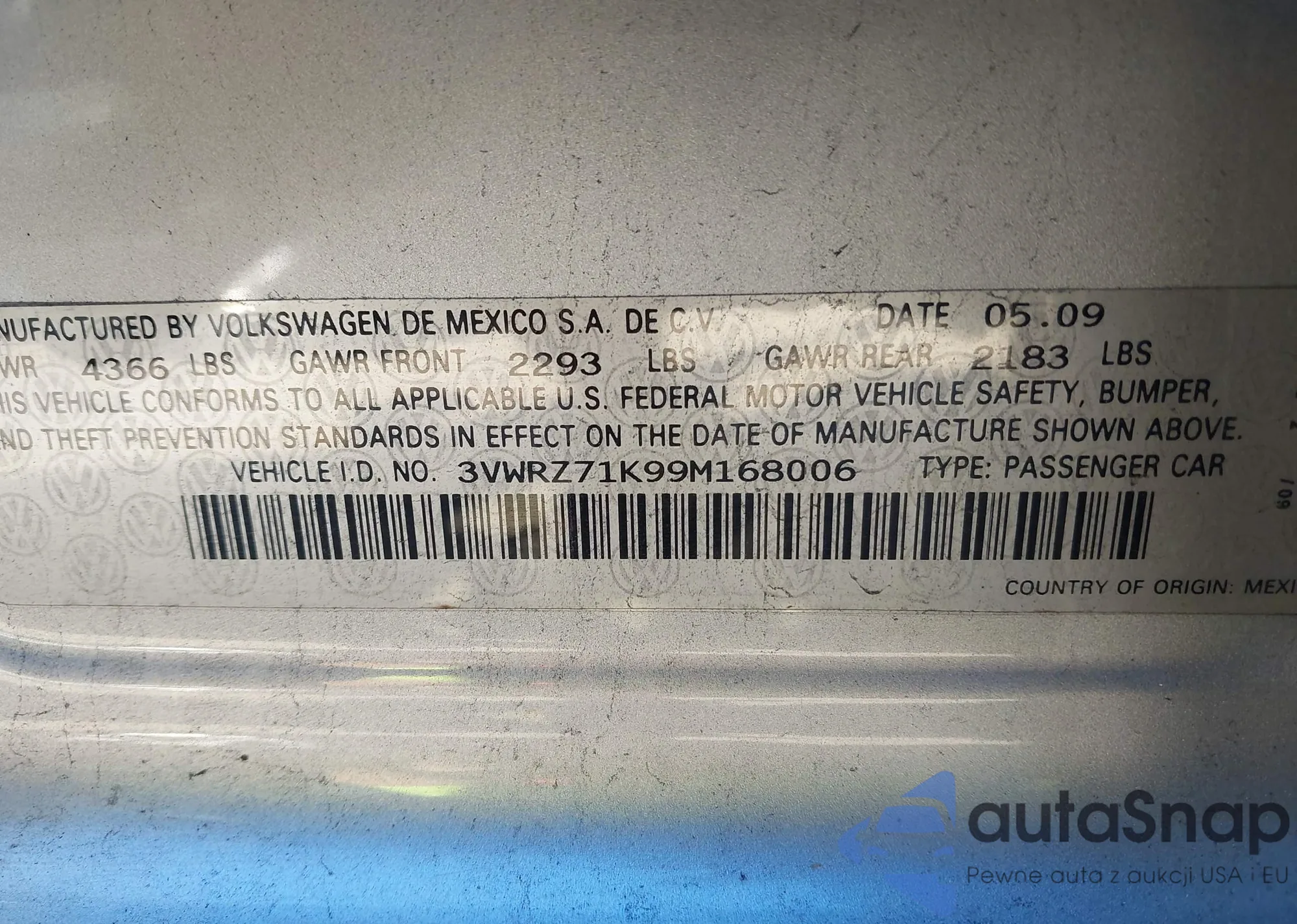 VIN: 3VWRZ71K99M168006