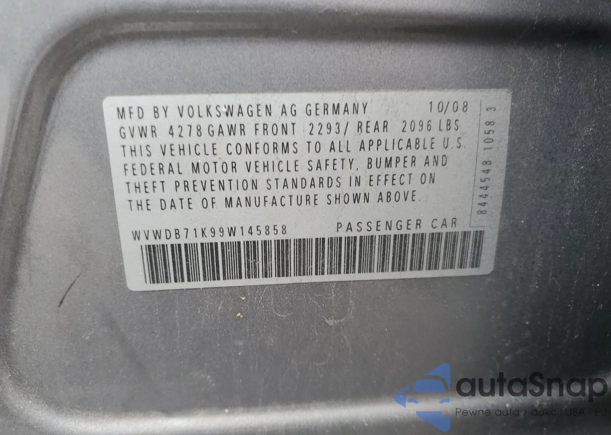 VIN: WVWDB71K99W145858