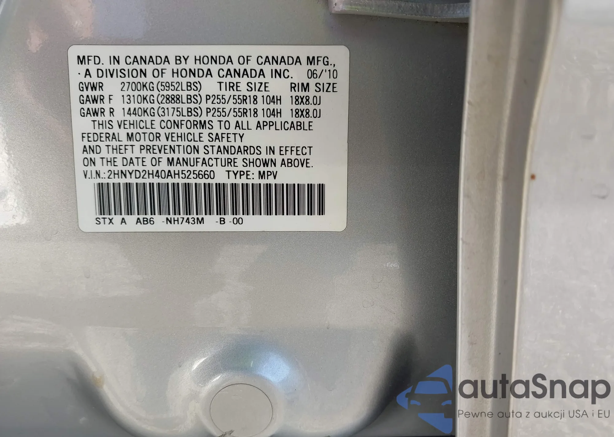 VIN: 2HNYD2H40AH525660