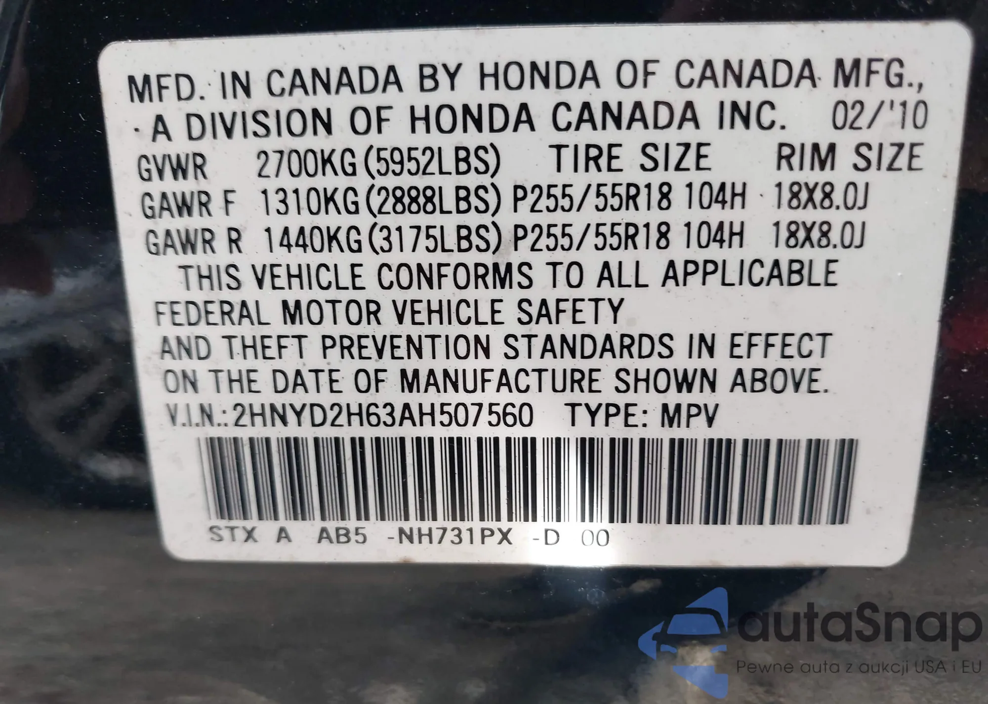 VIN: 2HNYD2H63AH507560