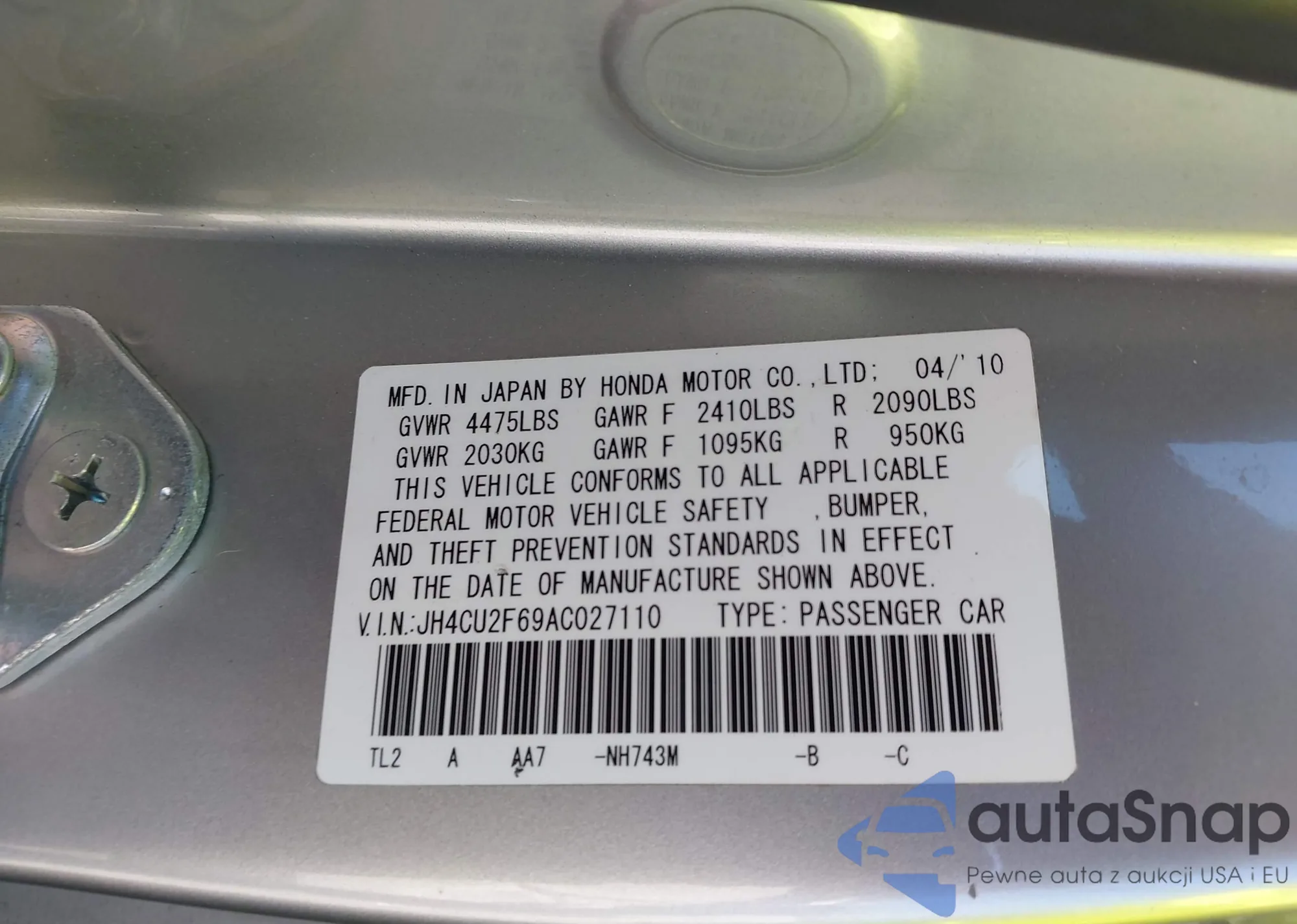 • VIN: JH4CU2F69AC027110