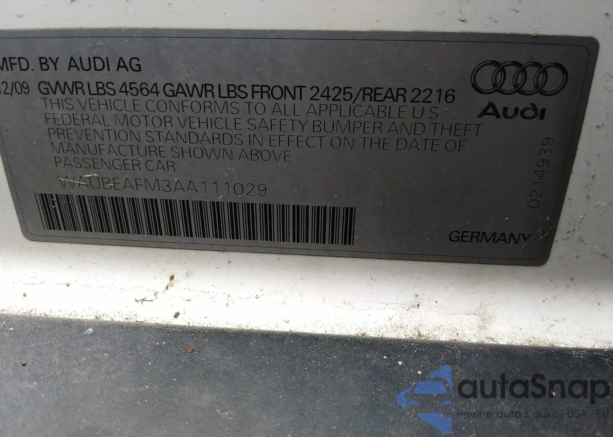 VIN: WAUBEAFM3AA111029