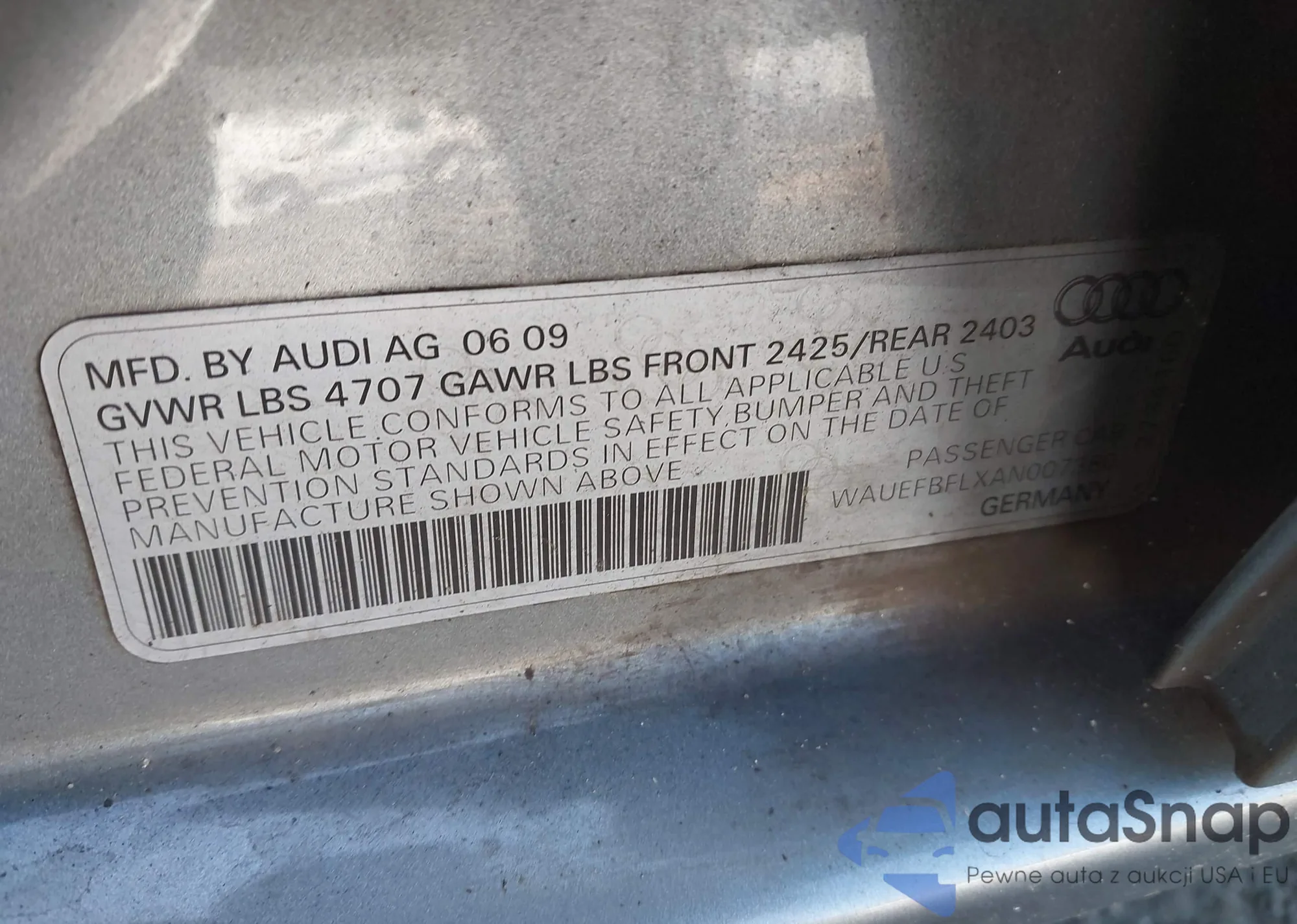 • VIN: WAUEFBFLXAN007380
