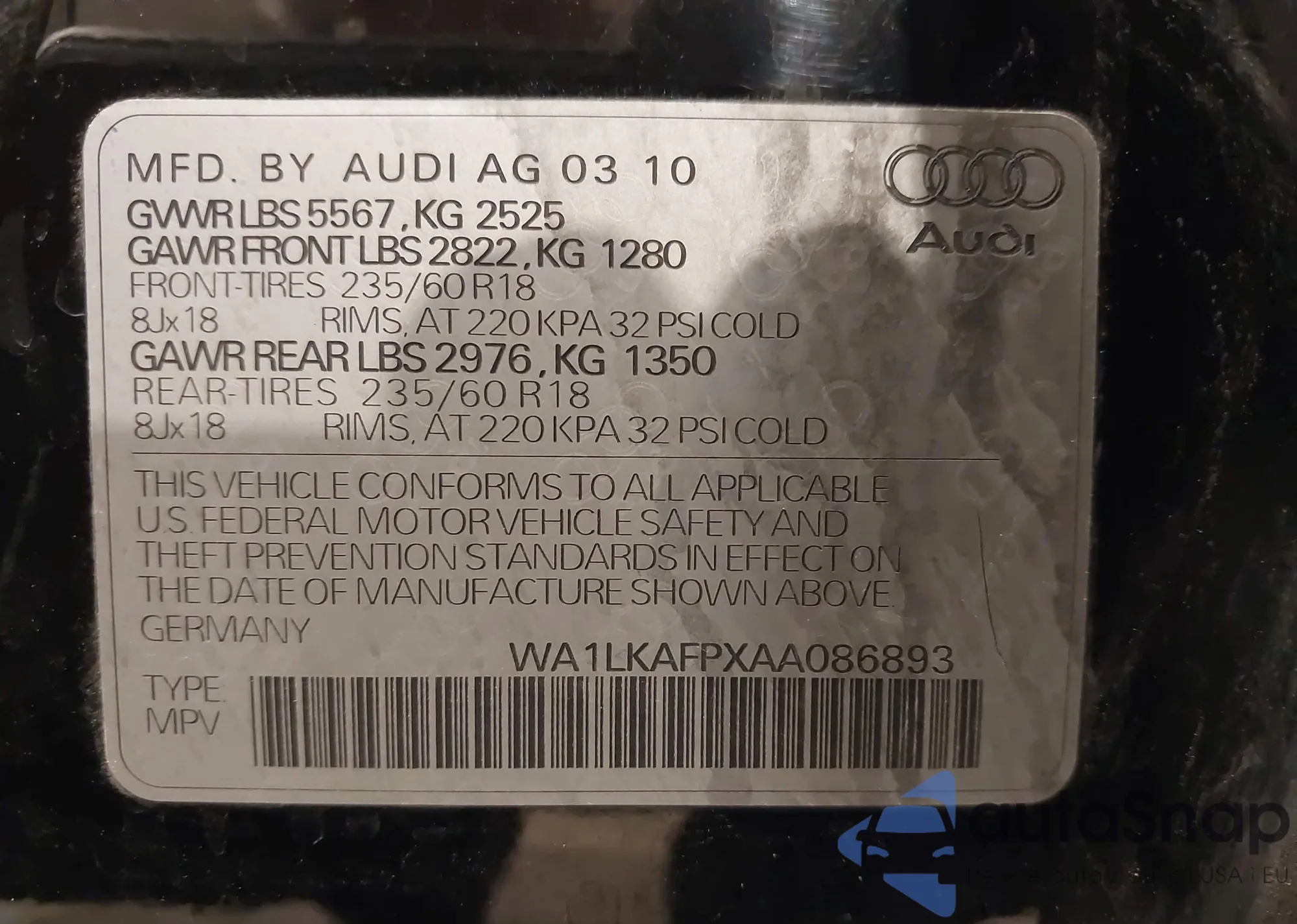 VIN: WA1LKAFPXAA086893