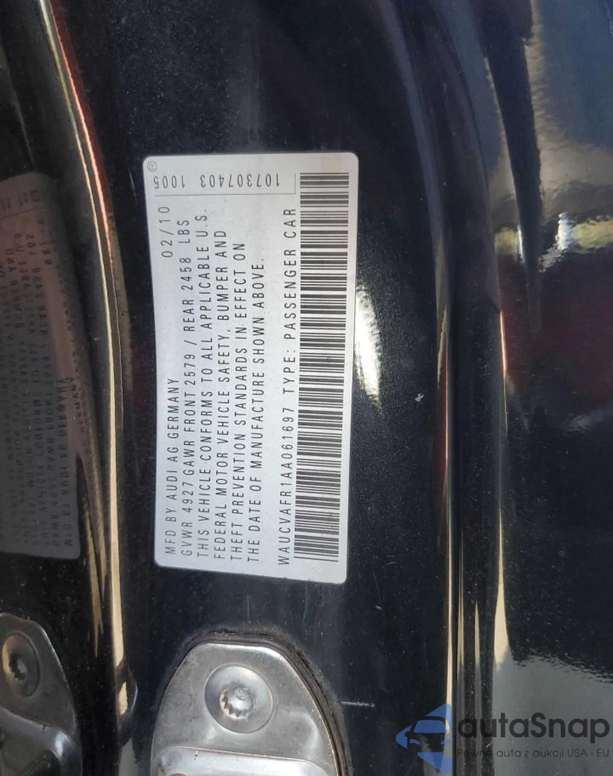 VIN: WAUCVAFR1AA061697