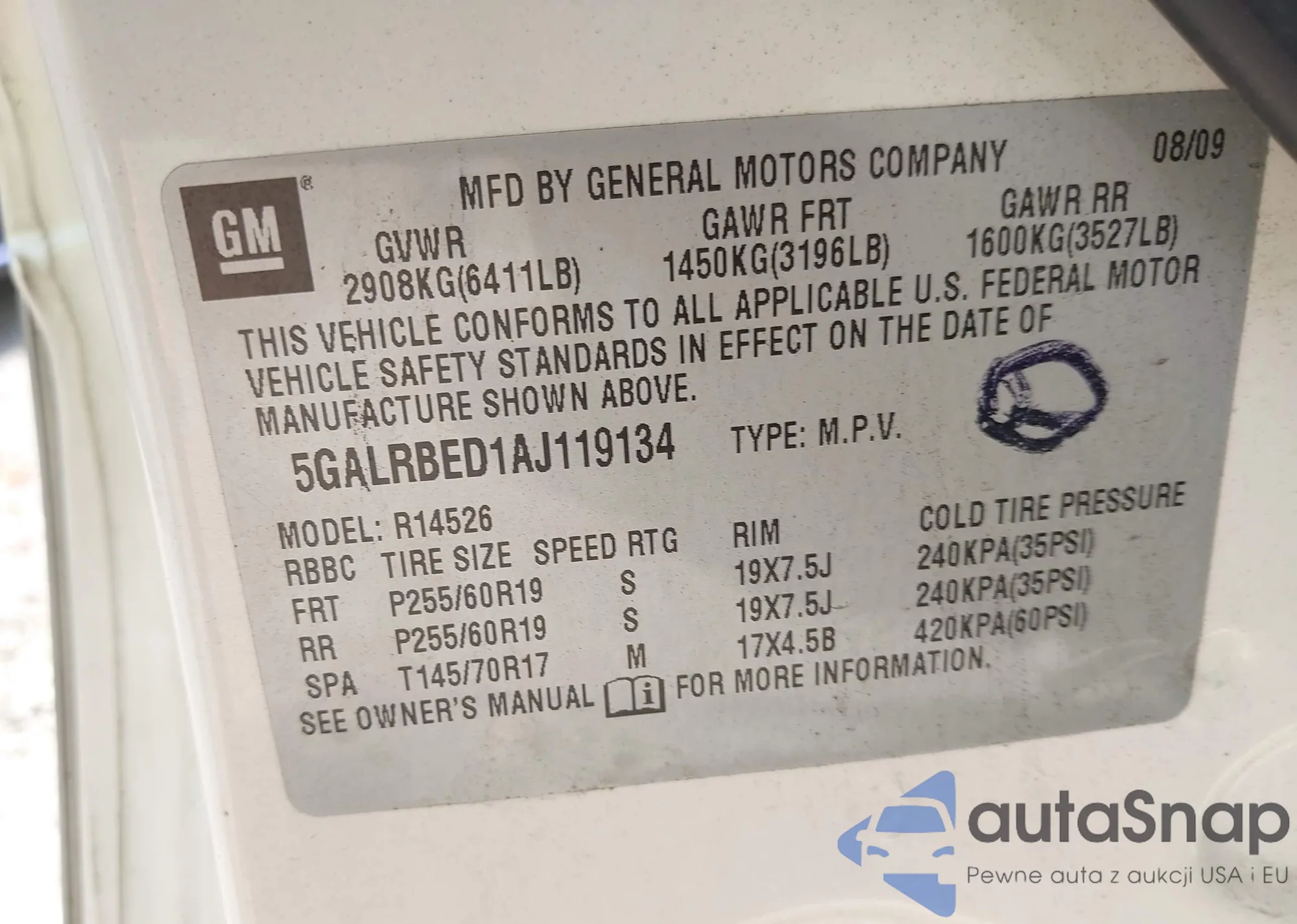 VIN: 5GALRBED1AJ119134