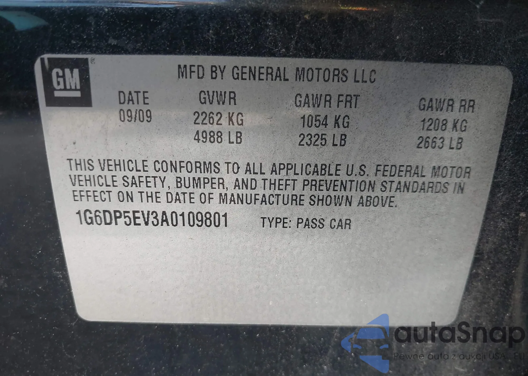 VIN: 1G6DP5EV3A0109801
