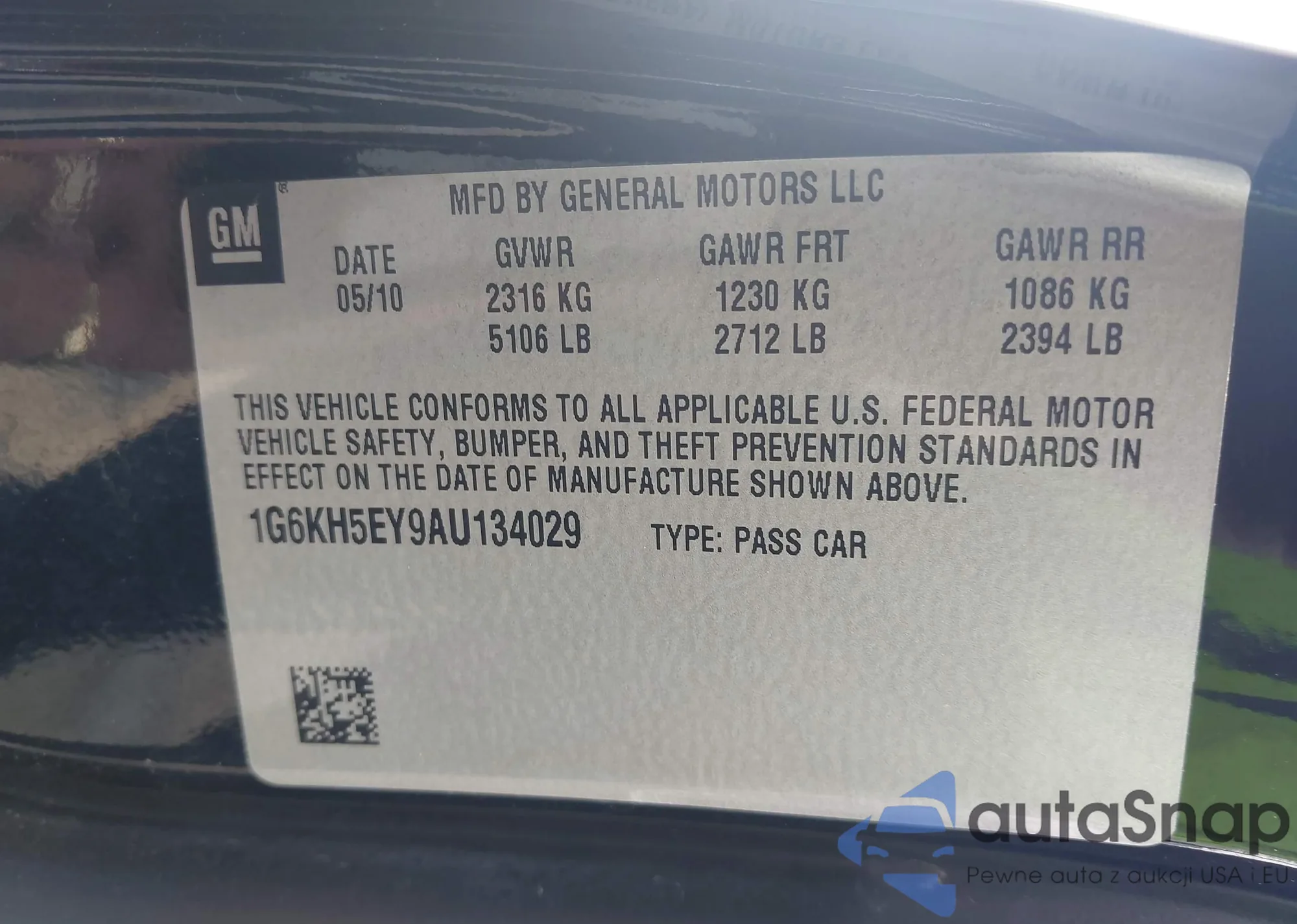 • VIN: 1G6KH5EY9AU134029