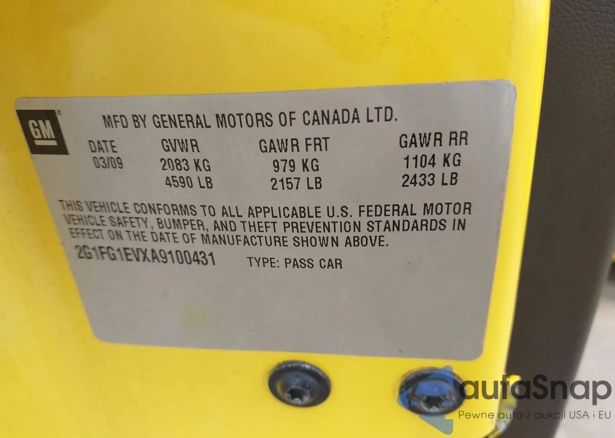 • VIN: 2G1FG1EVXA9100431