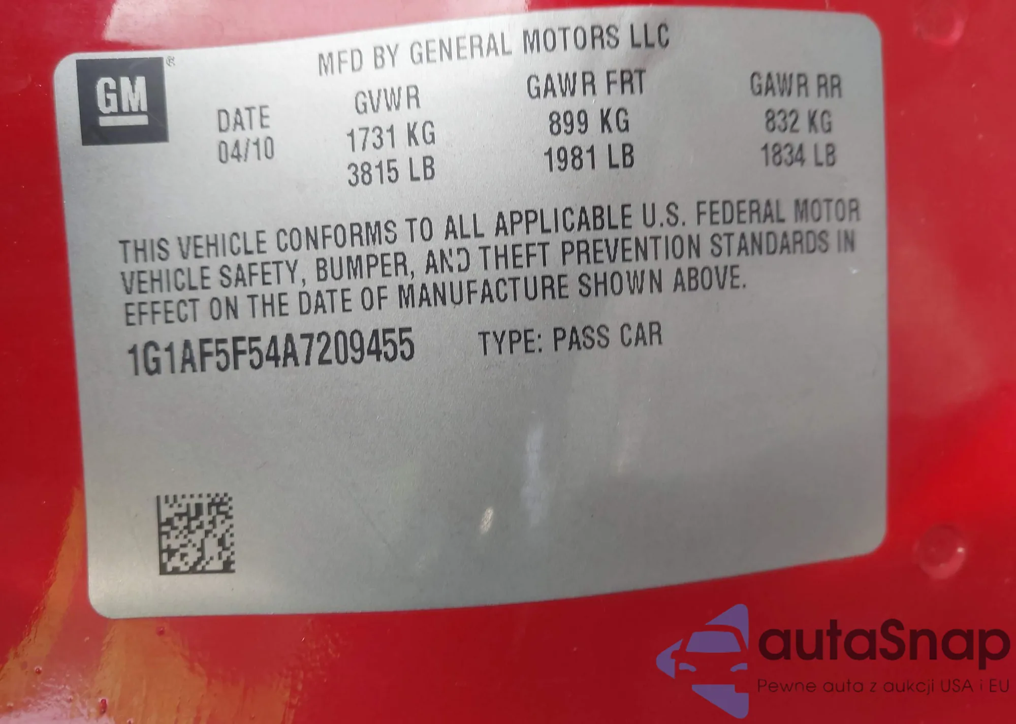 • VIN: 1G1AF5F54A7209455
