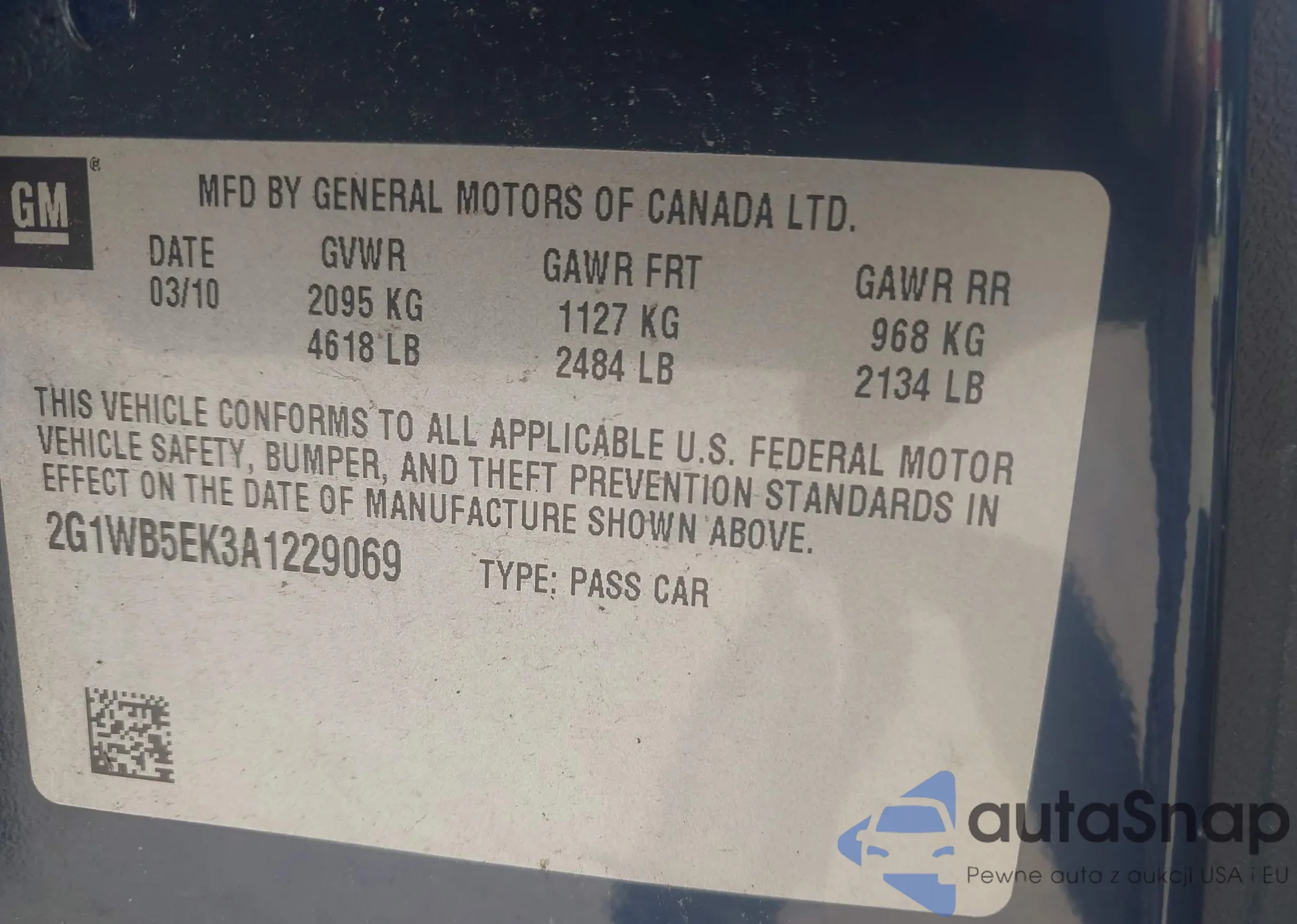 VIN: 2G1WB5EK3A1229069