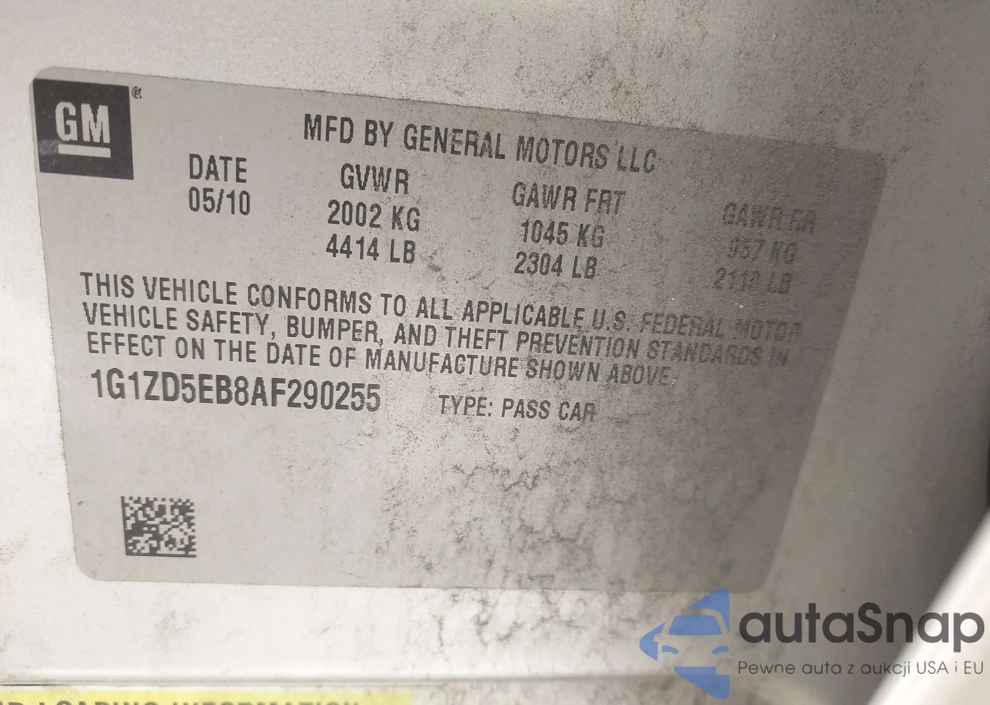 • VIN: 1G1ZD5EB8AF290255