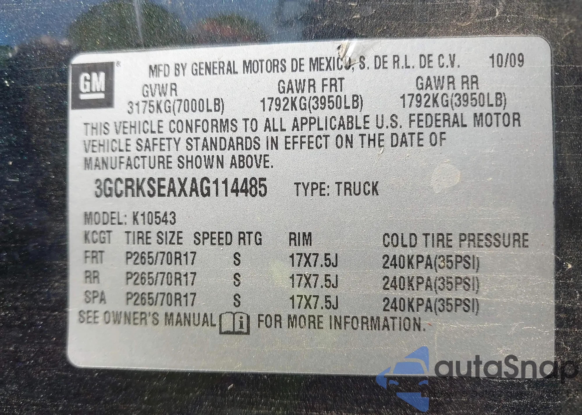 VIN: 3GCRKSEAXAG114485