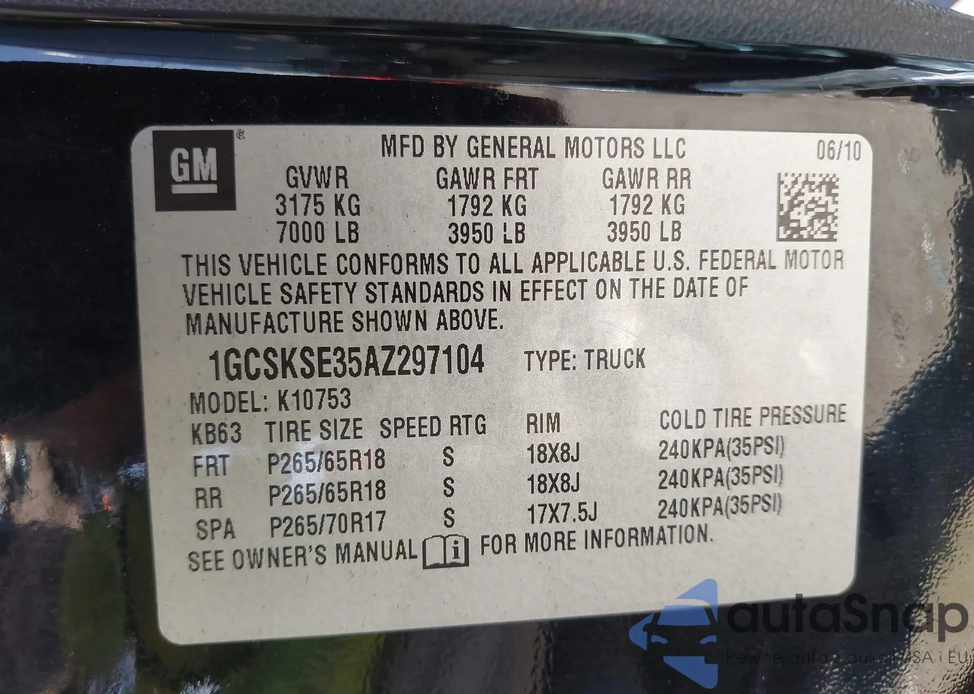 VIN: 1GCSKSE35AZ297104