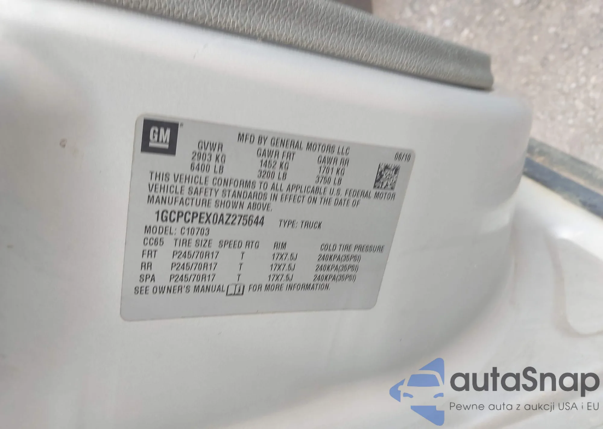 • VIN: 1GCPCPEX0AZ275644