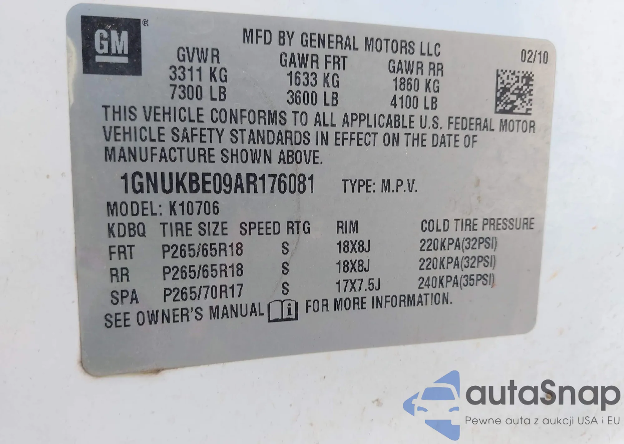 VIN: 1GNUKBE09AR176081