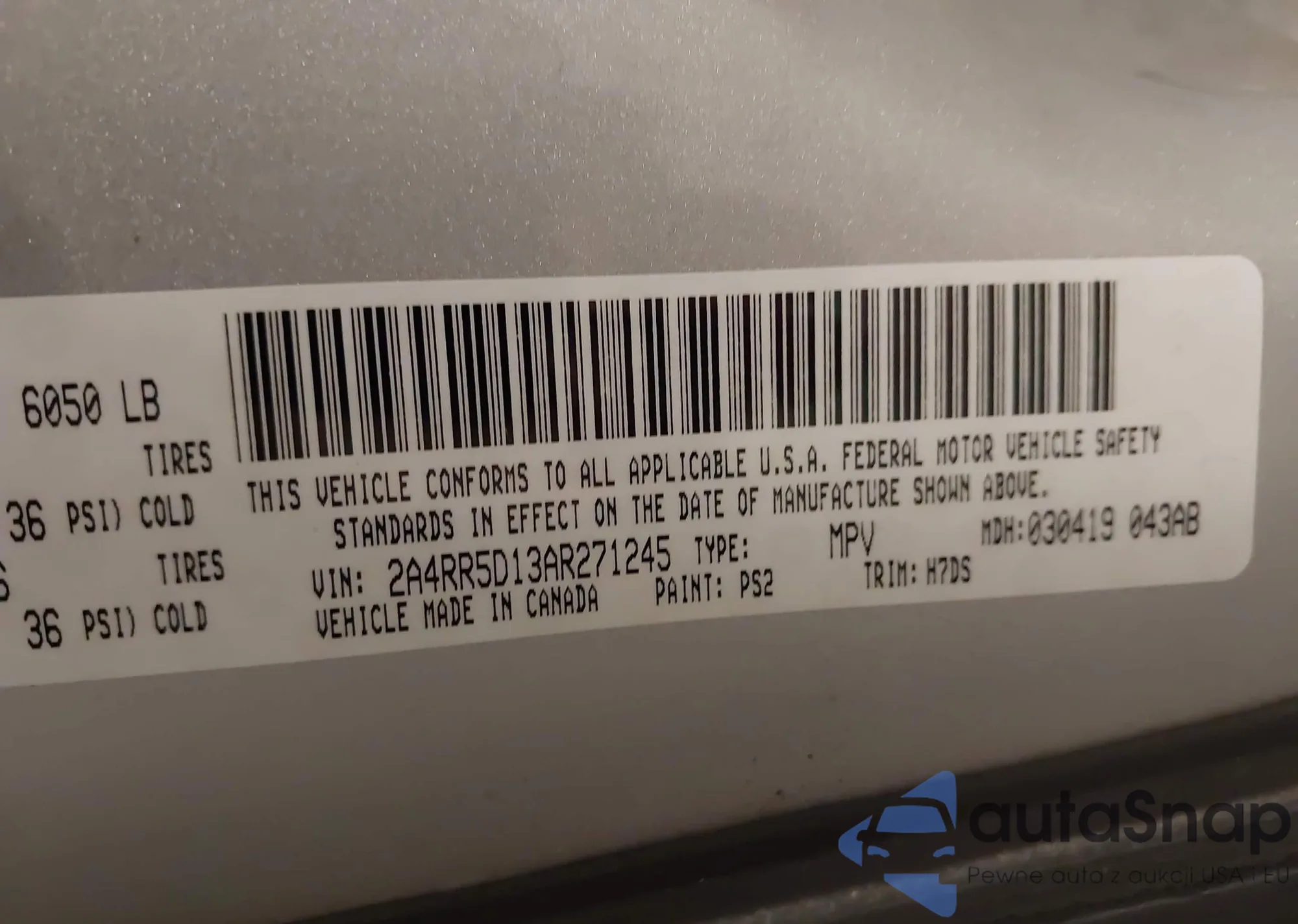 VIN: 2A4RR5D13AR271245