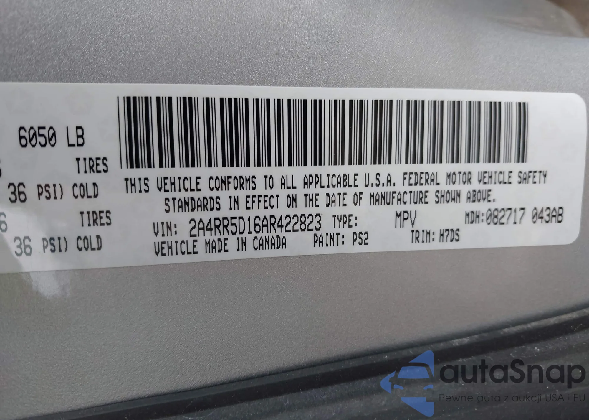 VIN: 2A4RR5D16AR422823