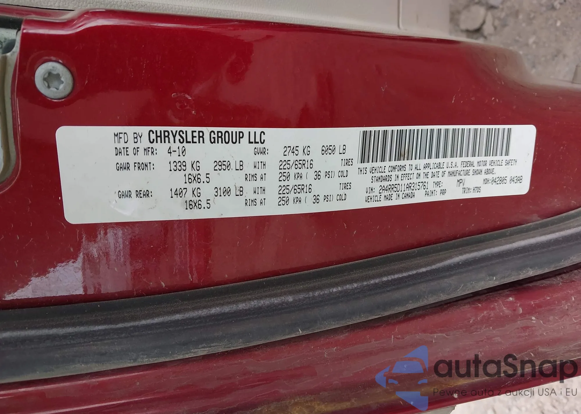 VIN: 2A4RR5D11AR315761